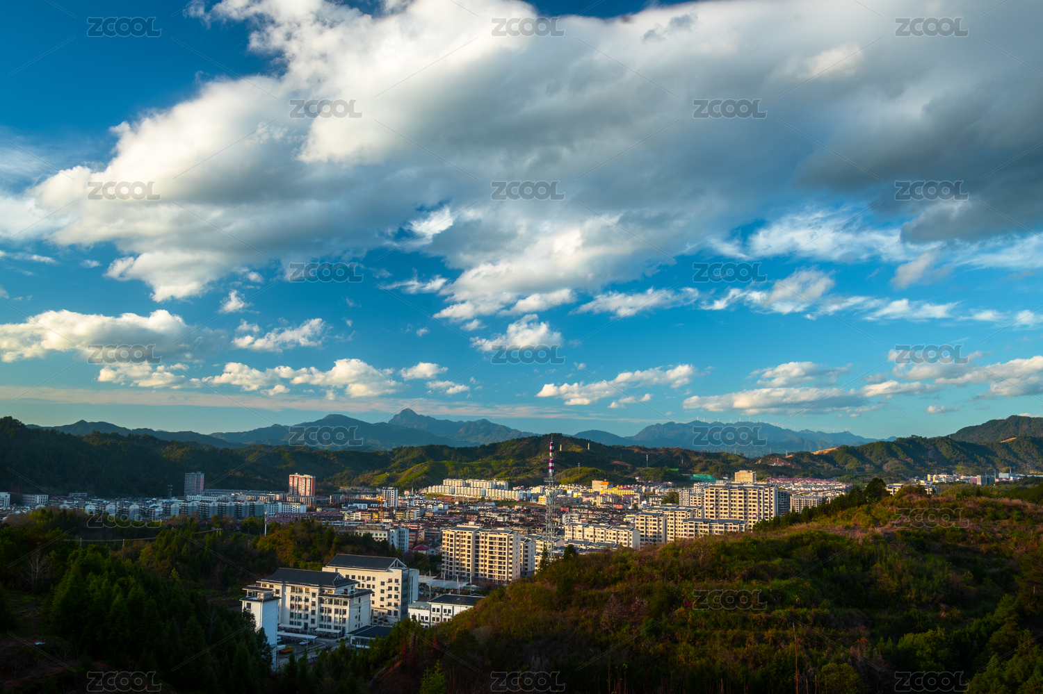 中国广东东莞现代商务大楼仰拍