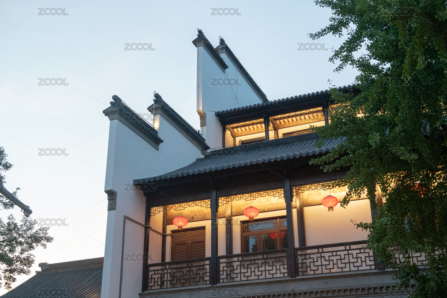 园林式温泉酒店建筑外观夜景