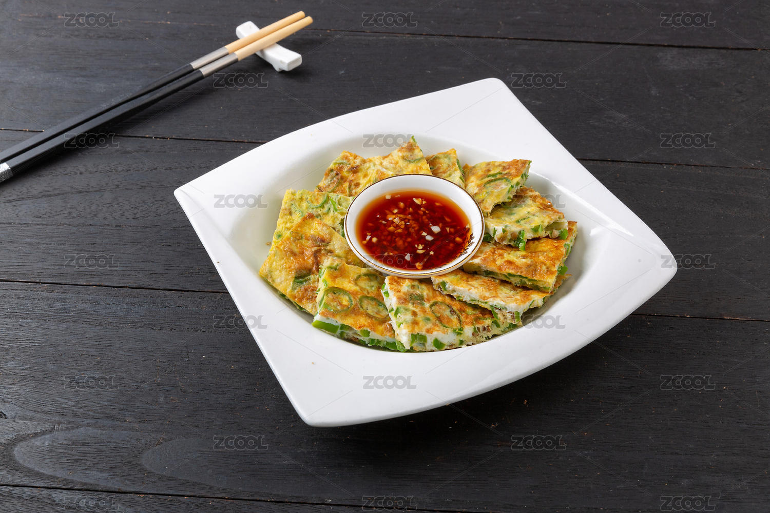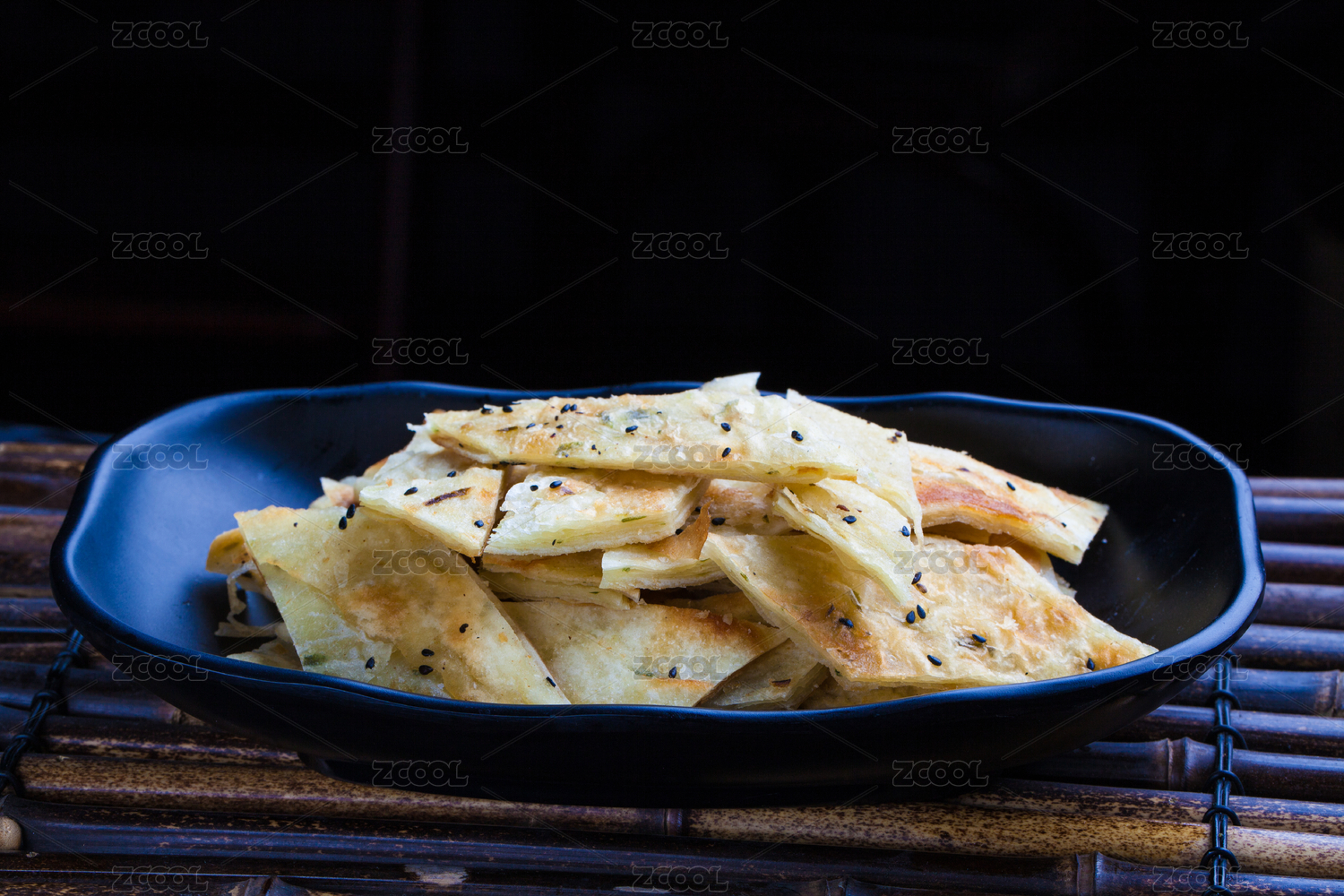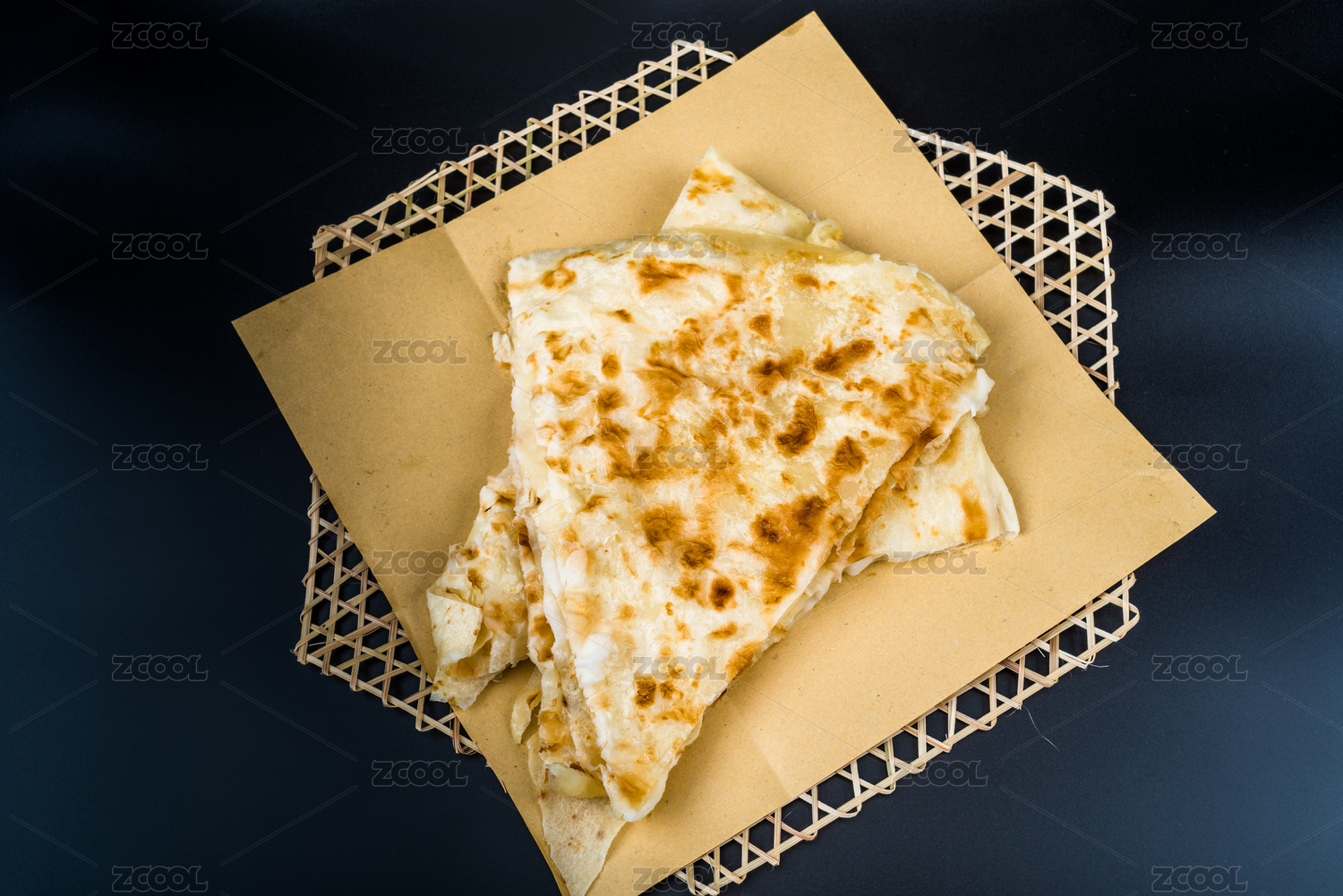 黑色盘子里的夹菜烙饼