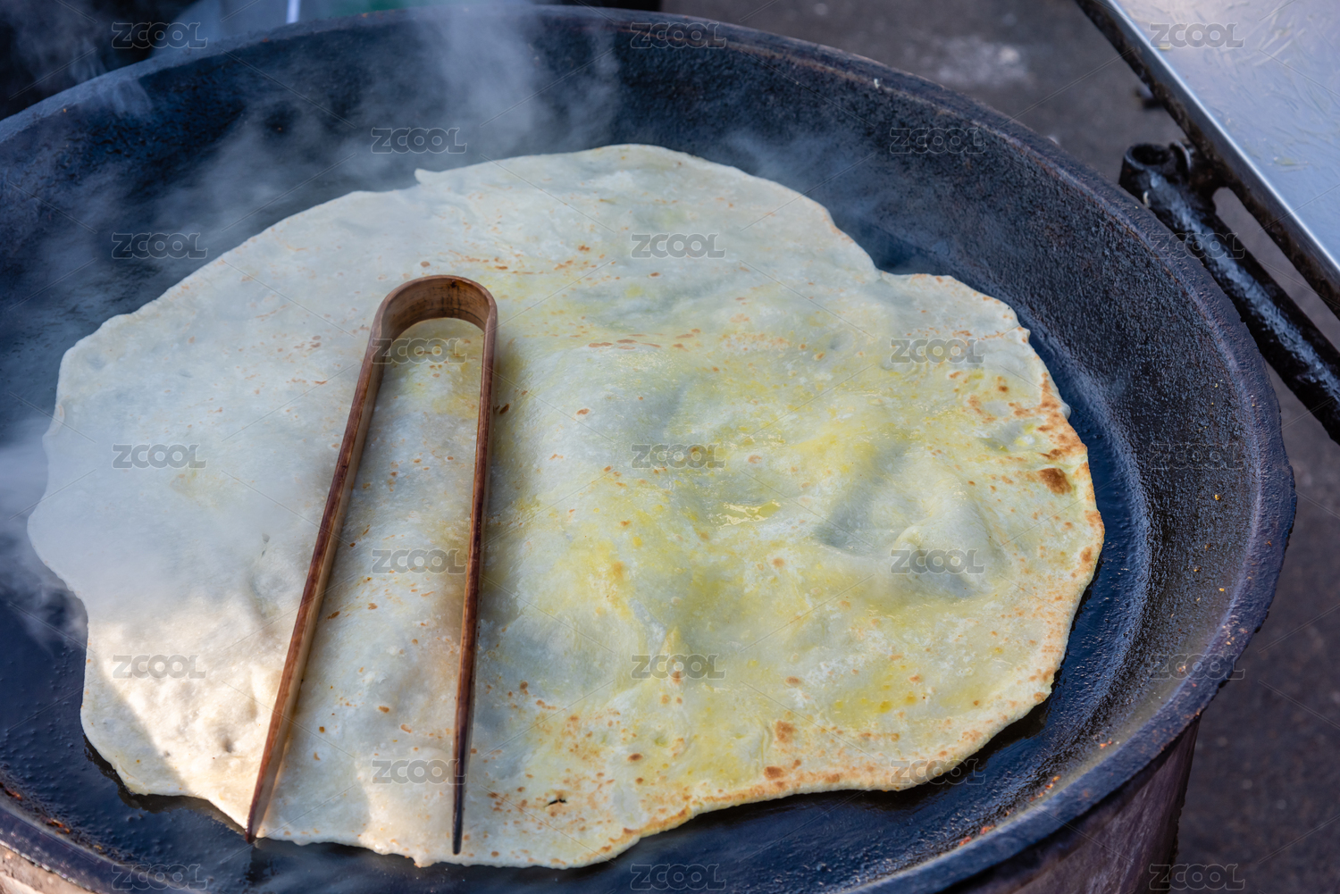 中国农村大集市场上的铁锅烙饼