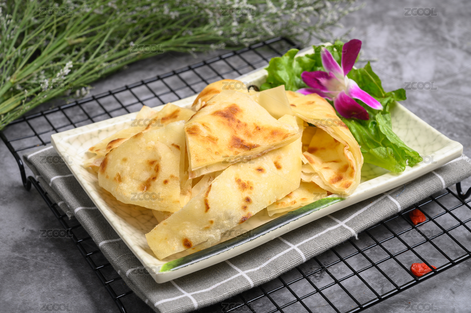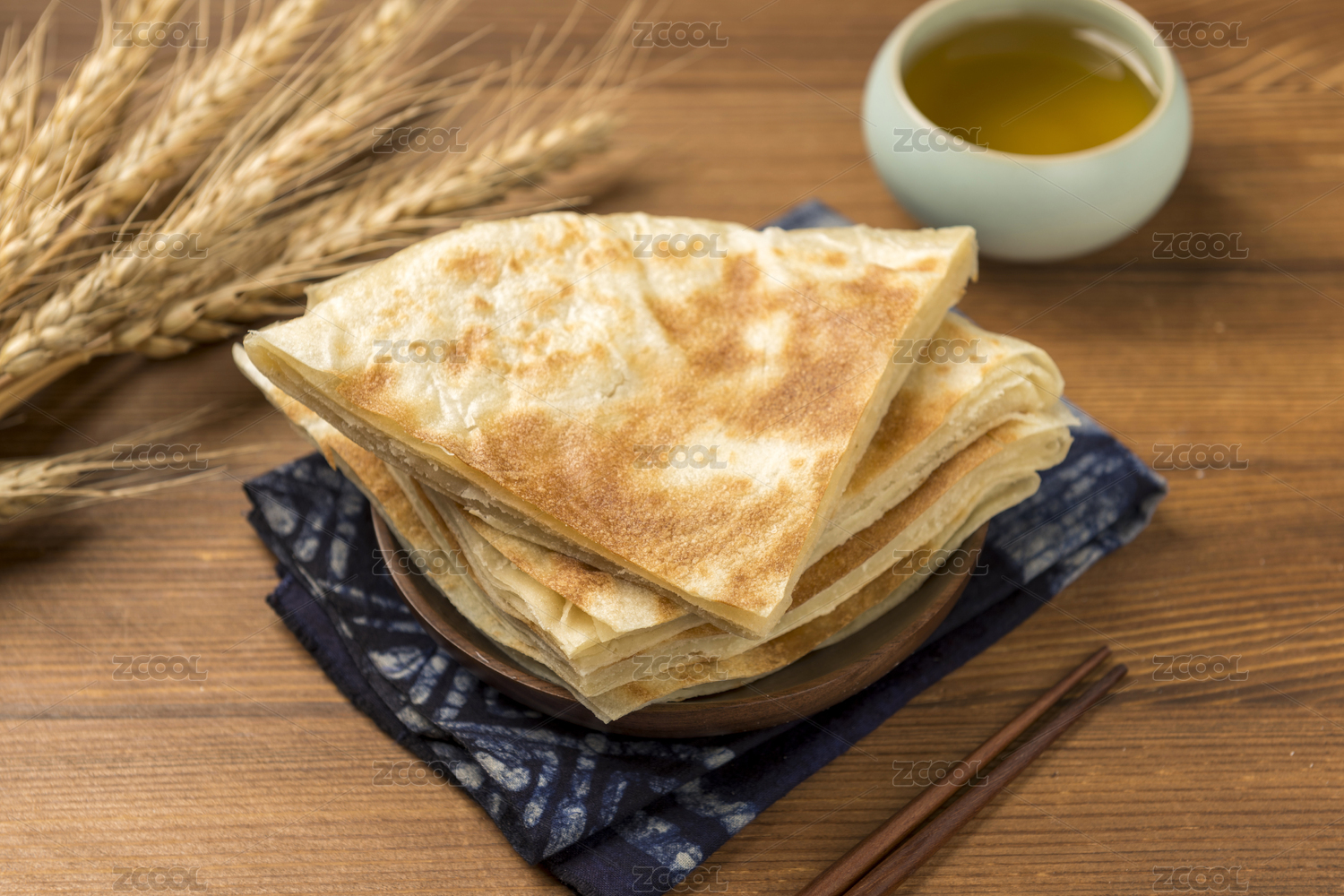 传统面食烙饼摆放在桌面上