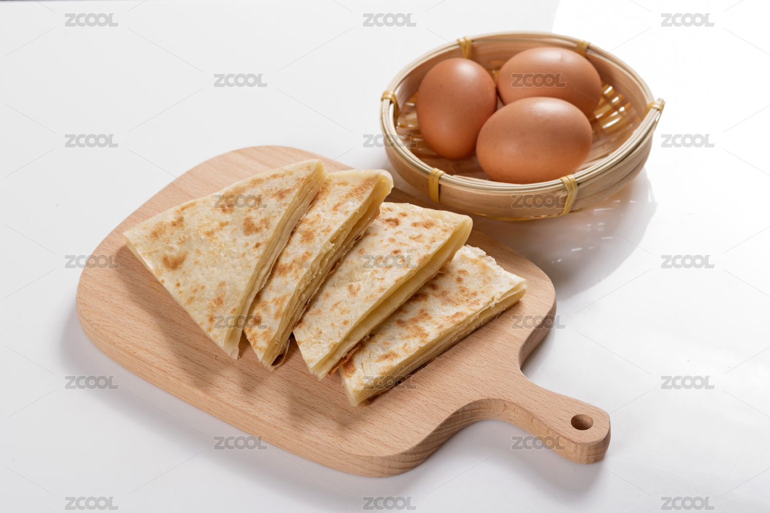砧板上有一份烙饼切角