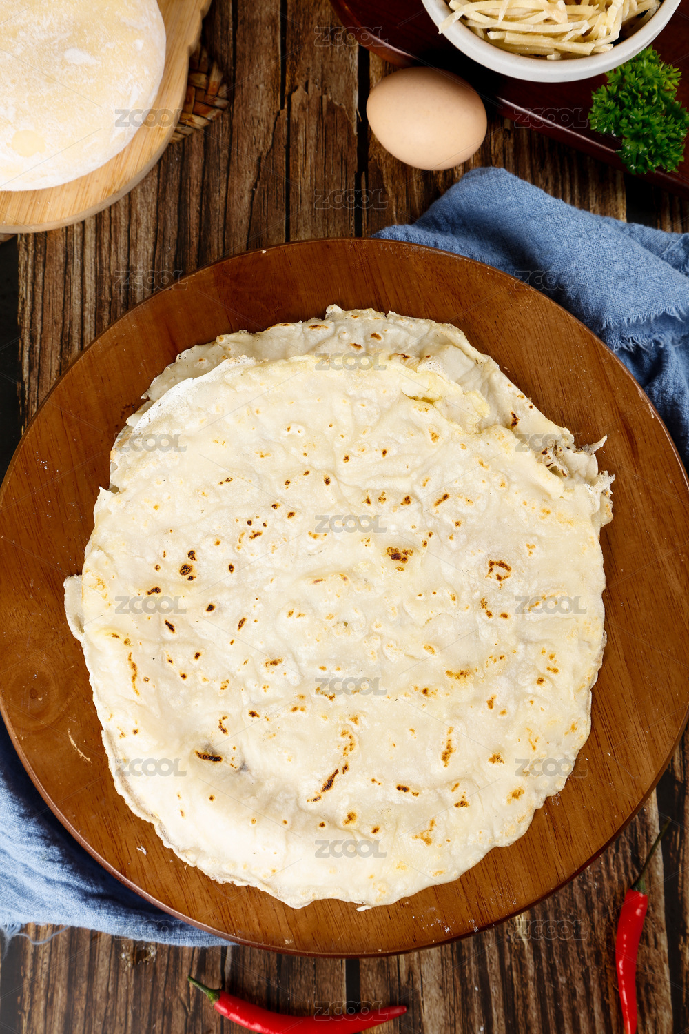 木板上放着烙饼