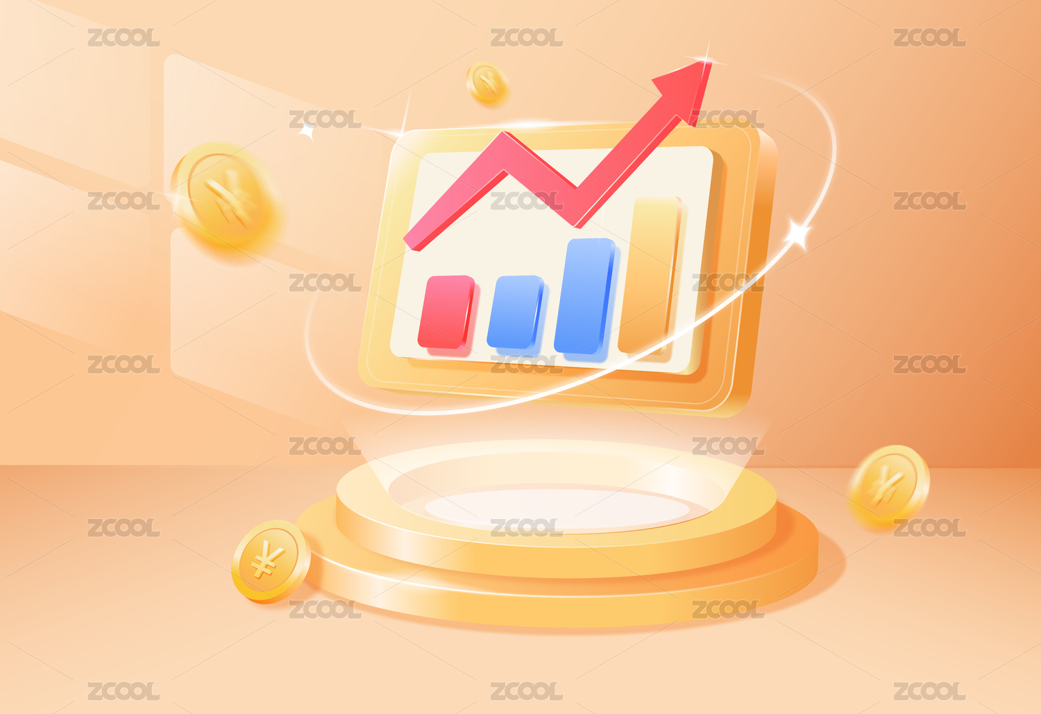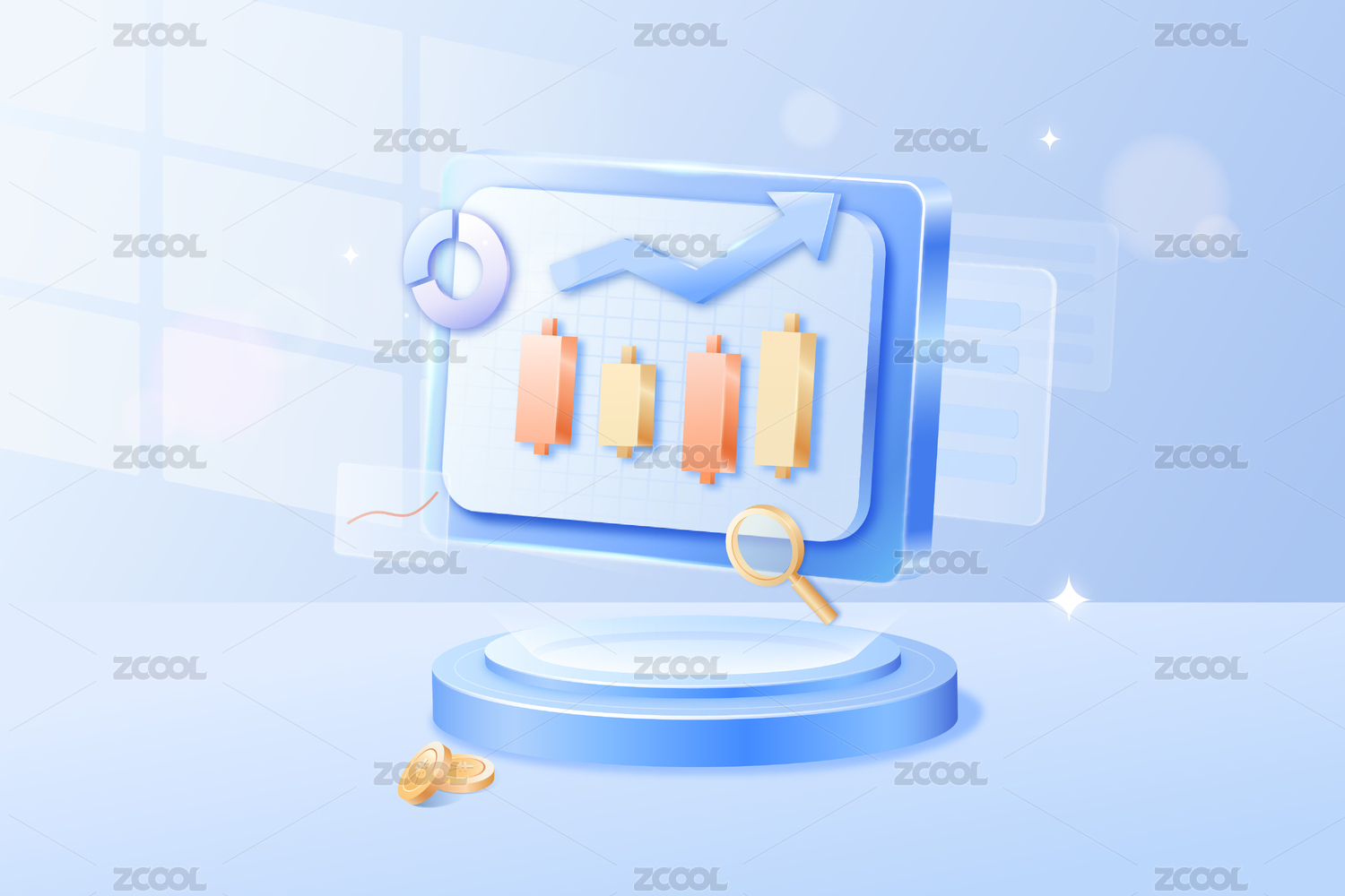 商务金融理财数据分析立体上升柱状图和饼图
