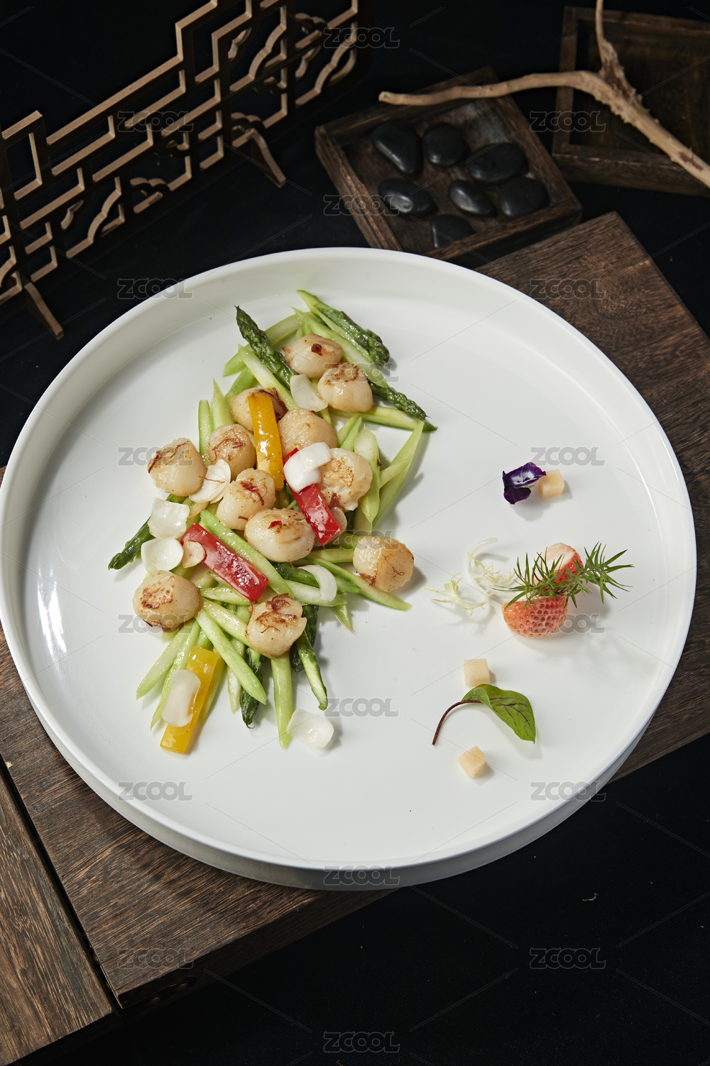 芦笋彩椒百合小炒澳带(瑶柱)