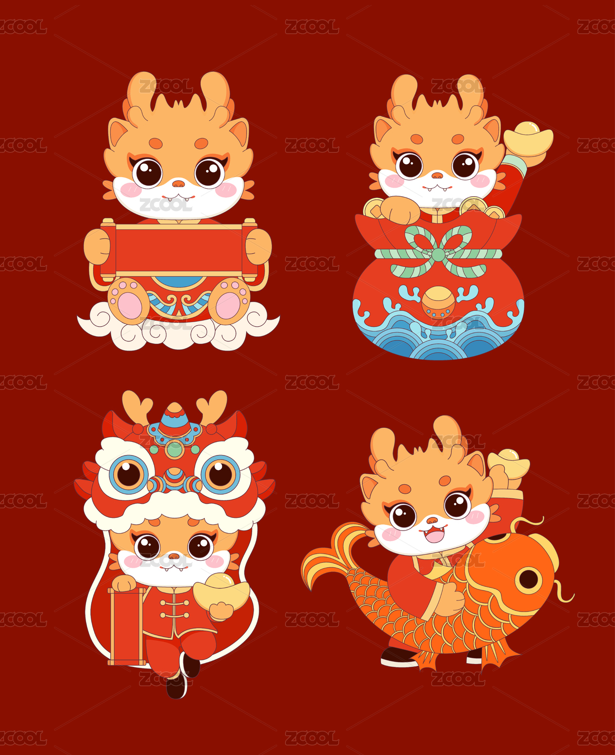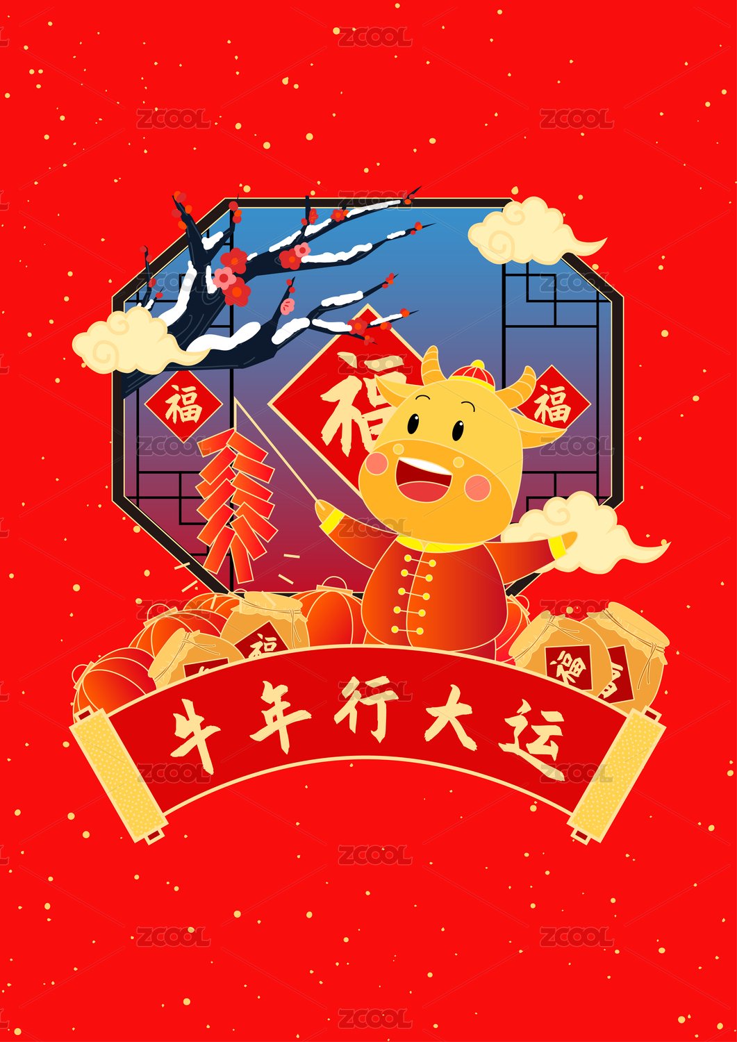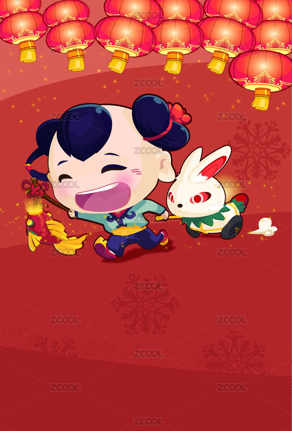 蛇年春节新年可爱卡通形象好运连连插画海报