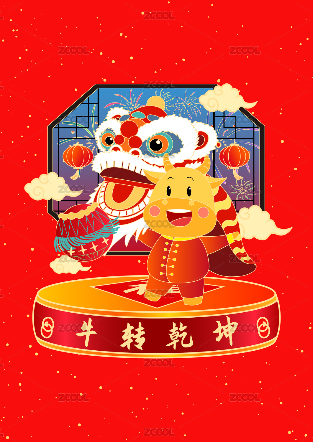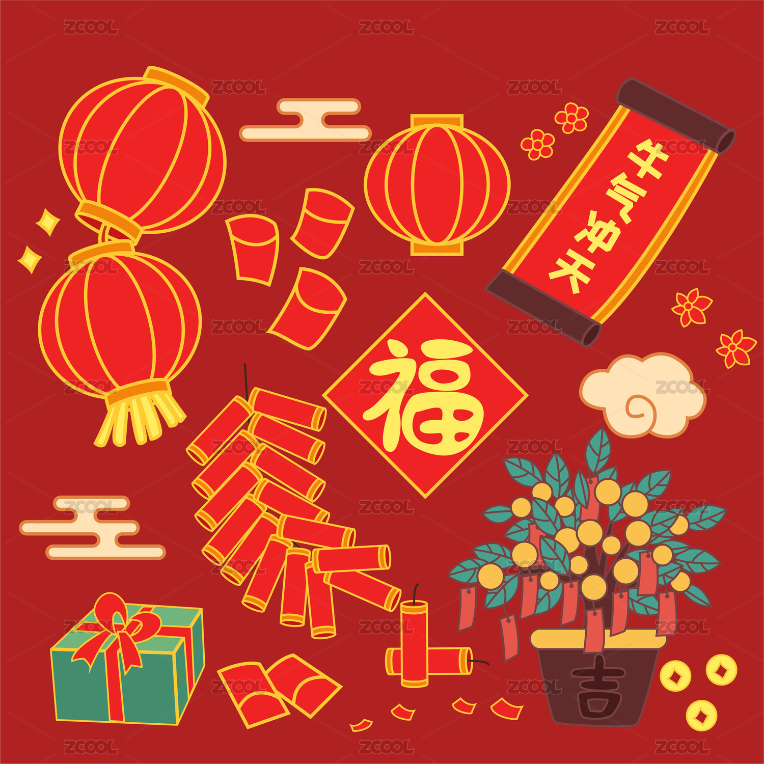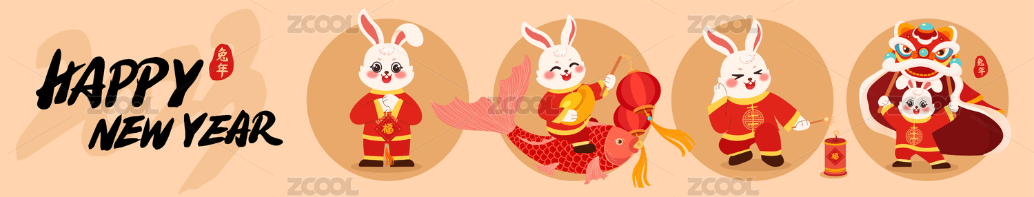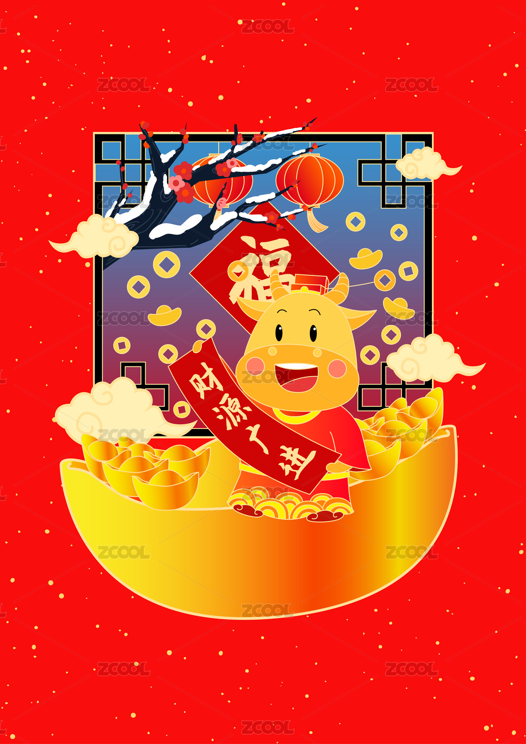 蛇年春节新年可爱卡通形象好运连连插画海报