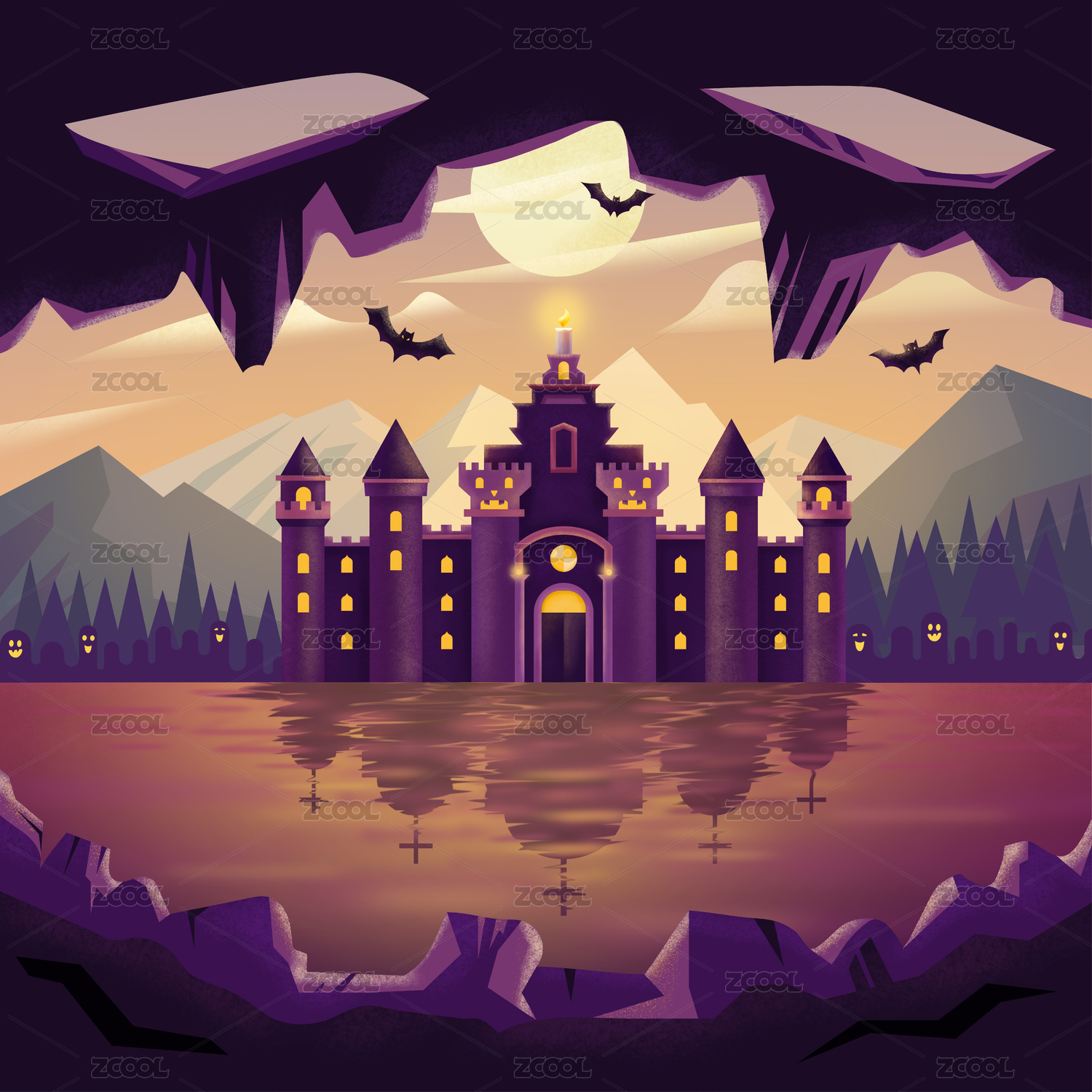 一座充满恐怖和幽默的城堡与倒影在一个南瓜怪的大嘴里