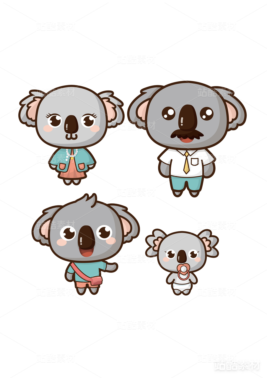 矢量考拉一家卡通IP吉祥物动物插画