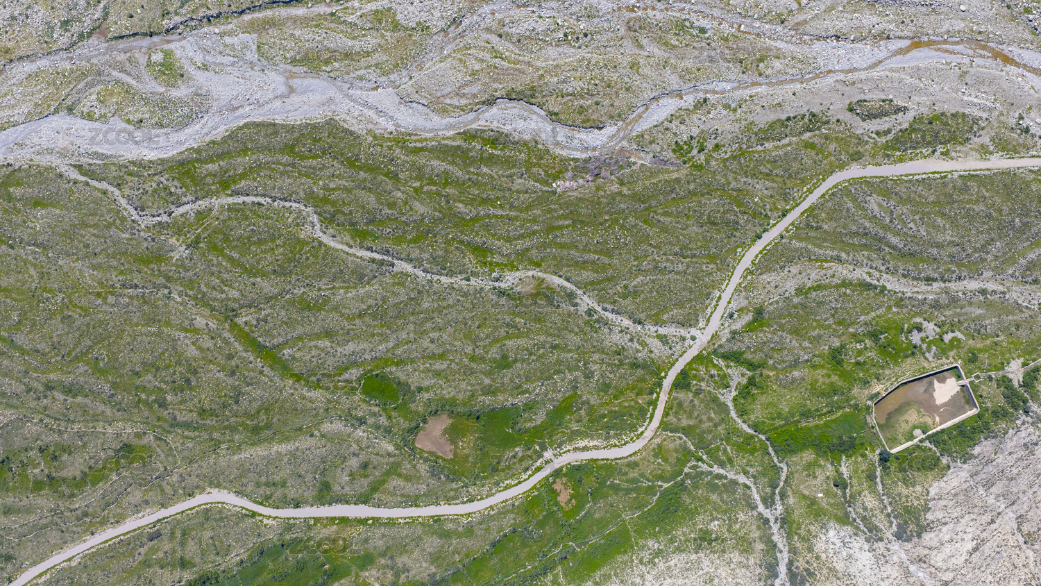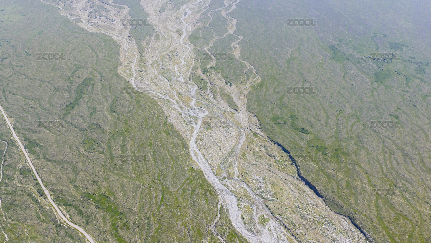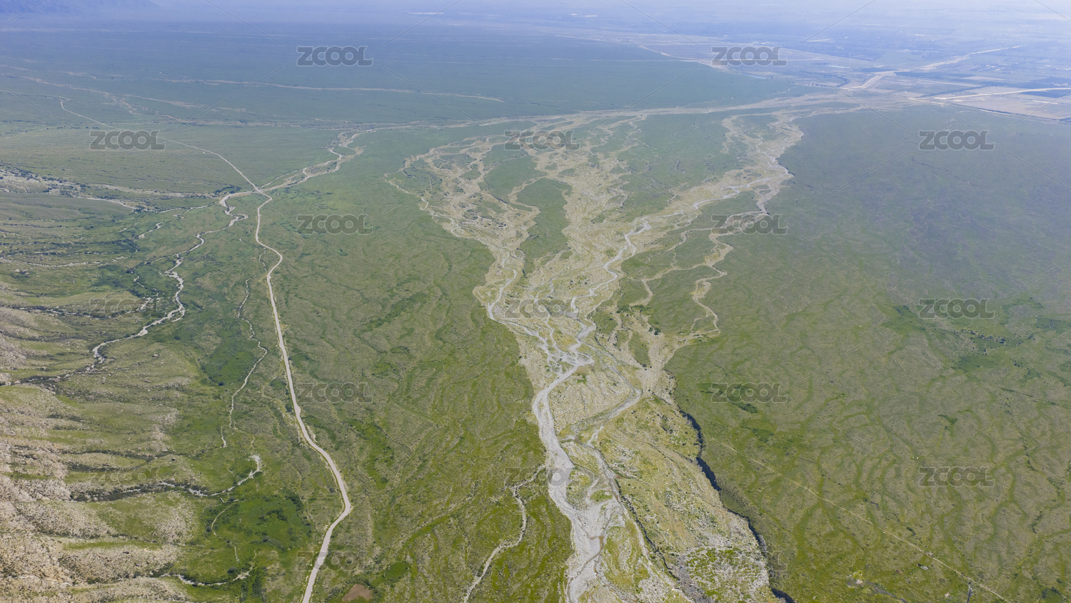 高原戈壁滩绿洲干枯的河道河床