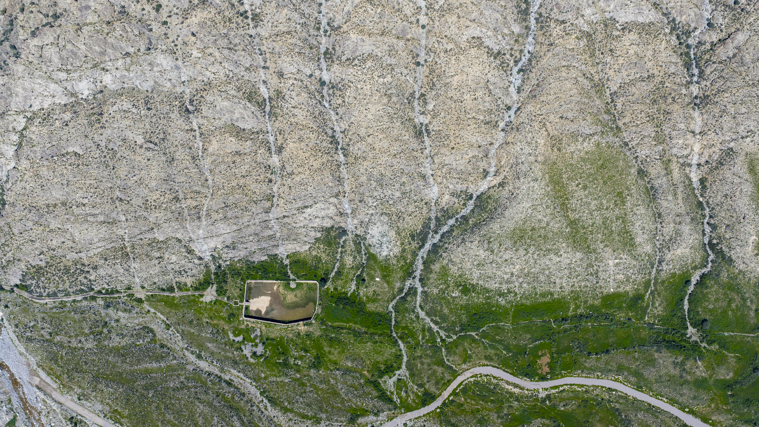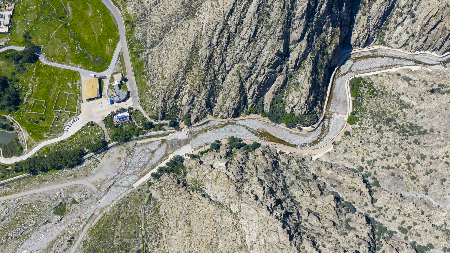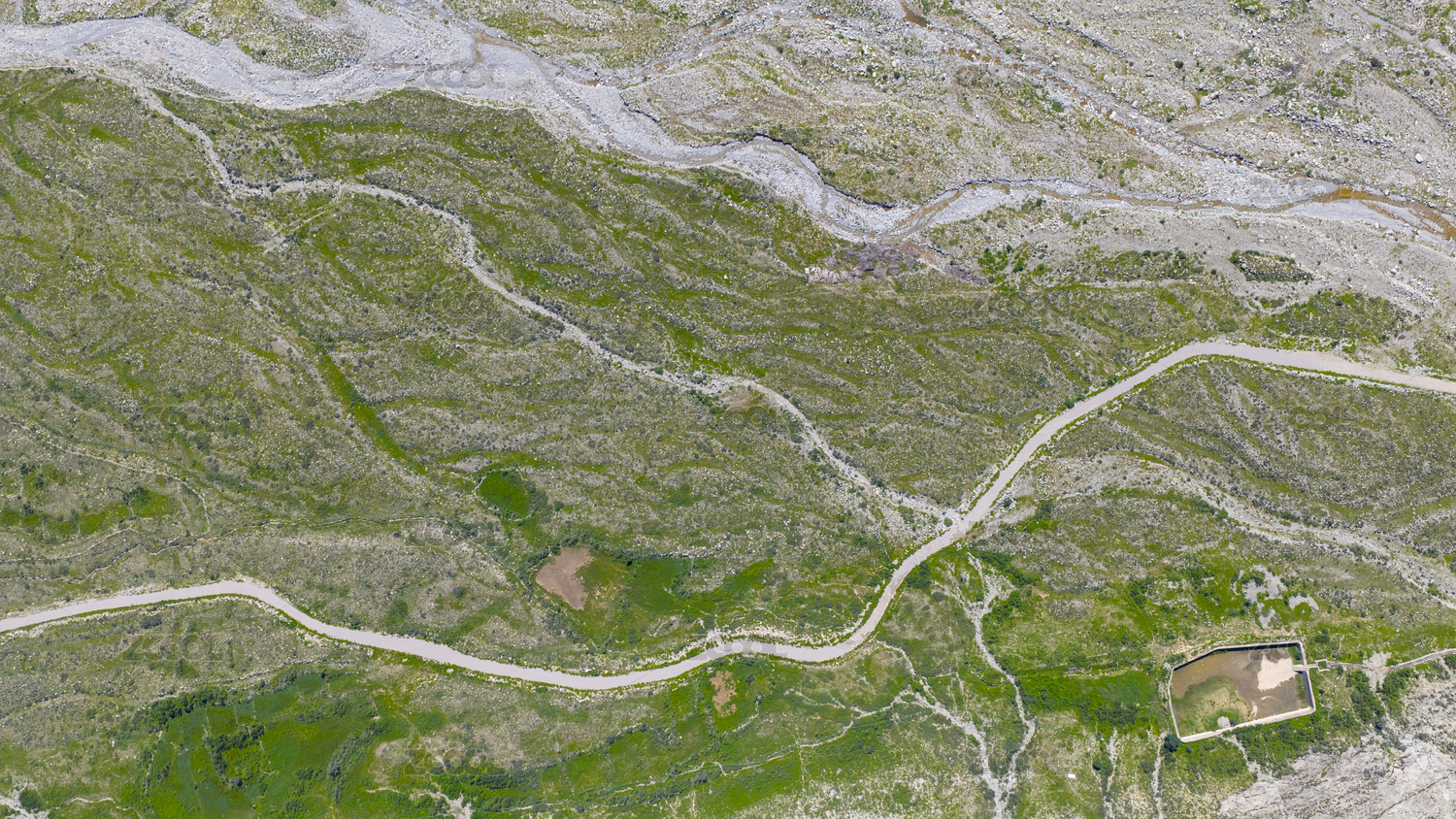 高原戈壁滩绿洲干枯的河道河床