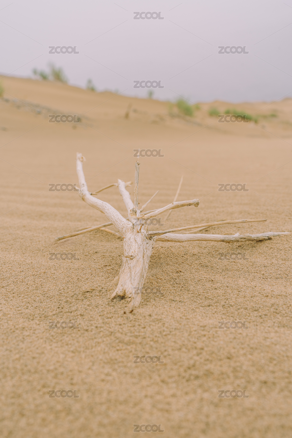 乌兰布和沙漠干旱环境中干枯的树枝