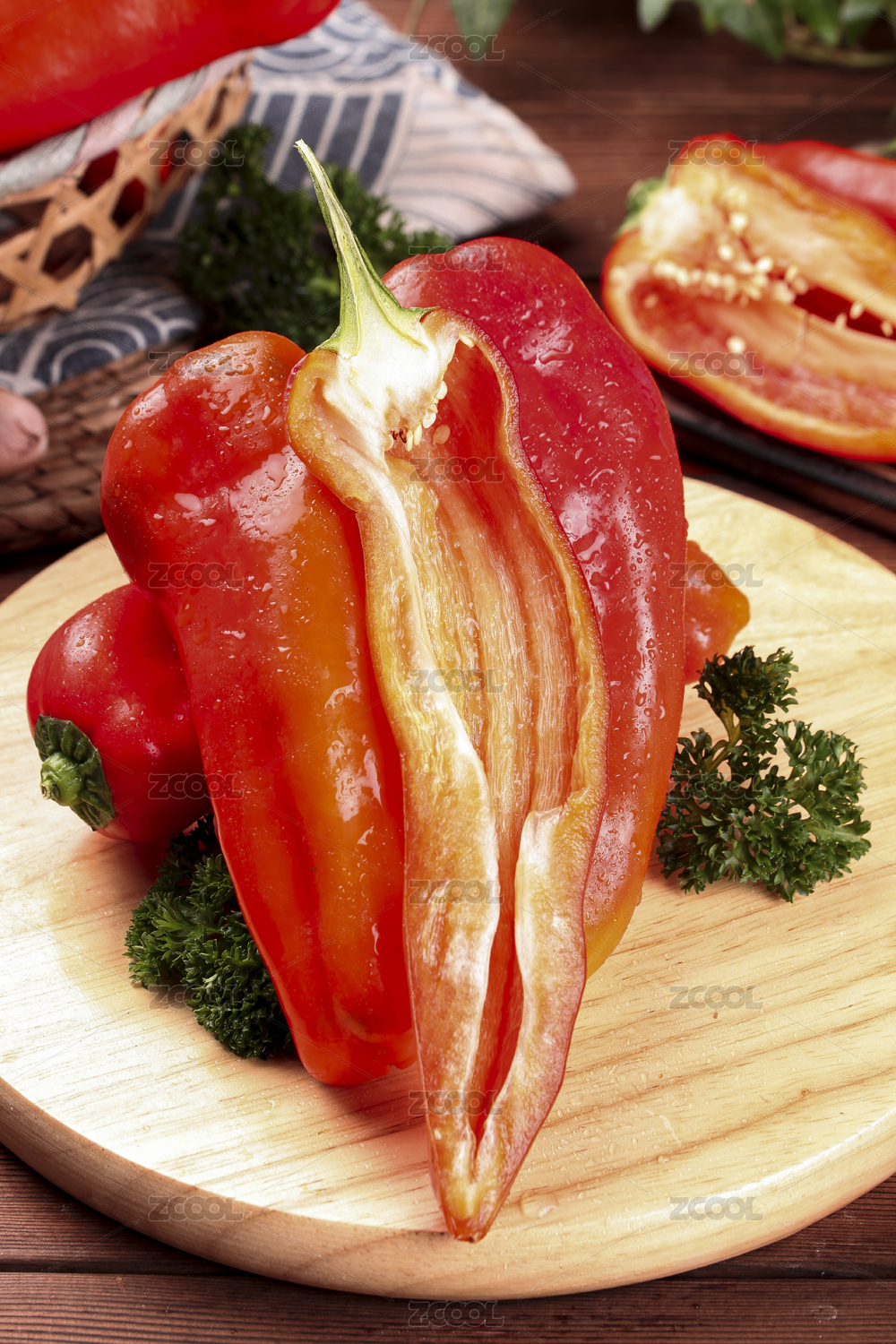 新鲜切开的红椒