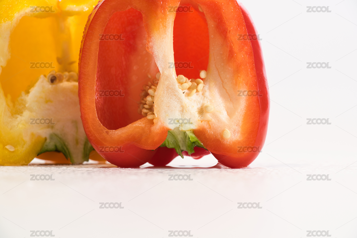 新鲜切开的红椒和黄椒