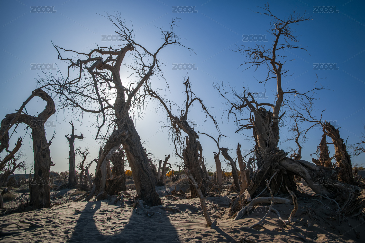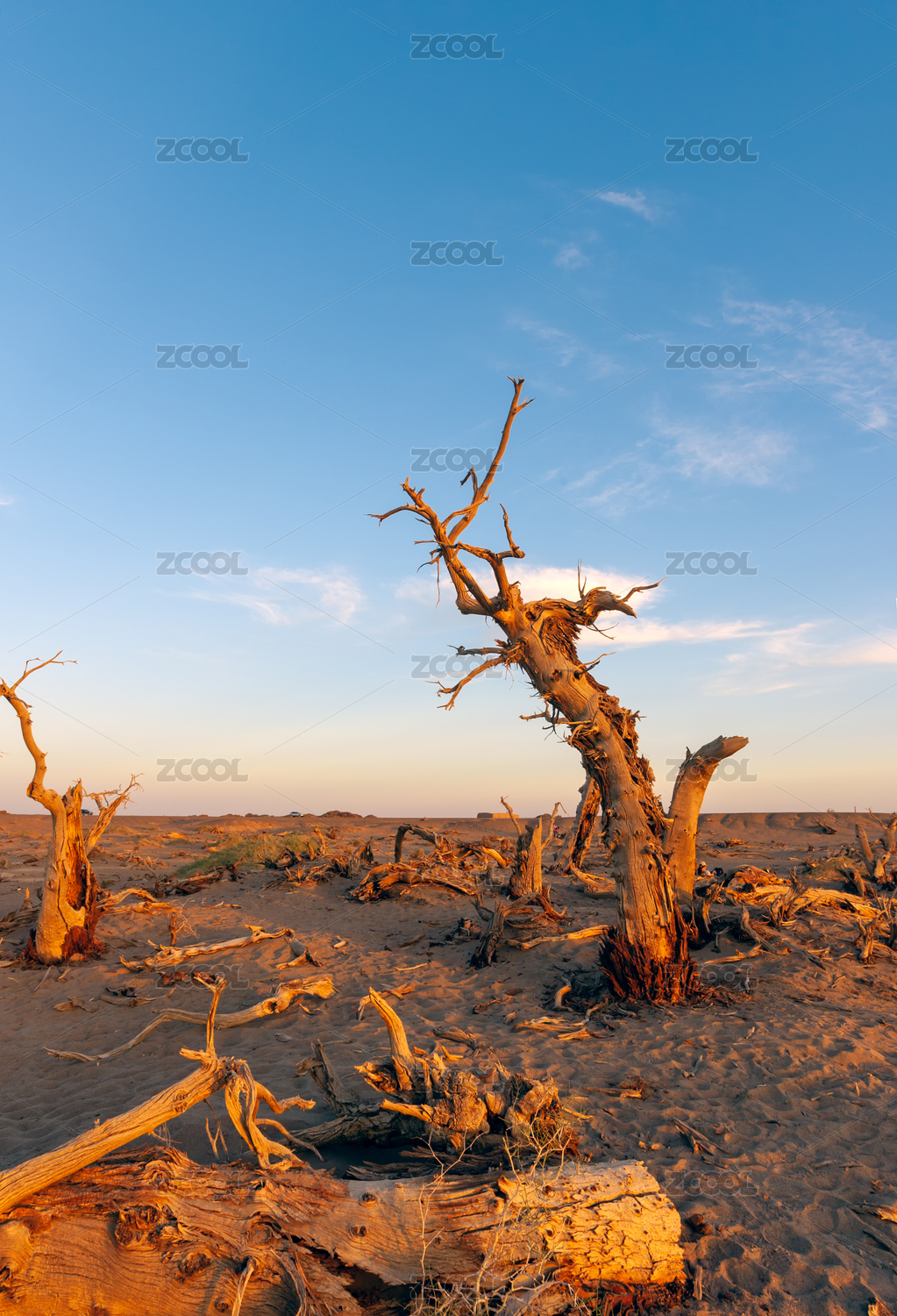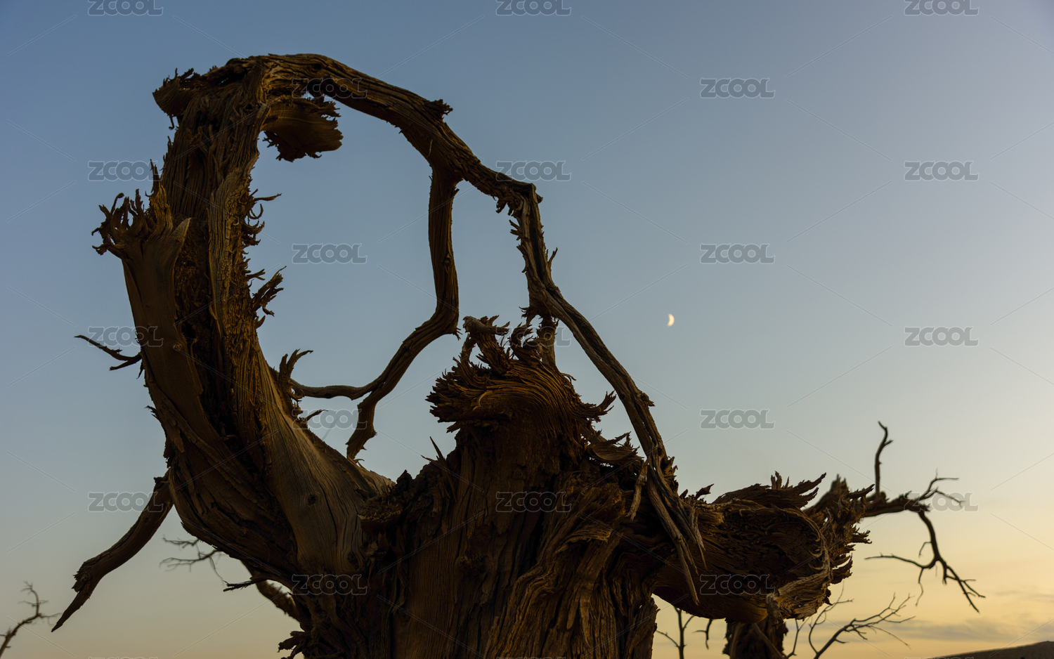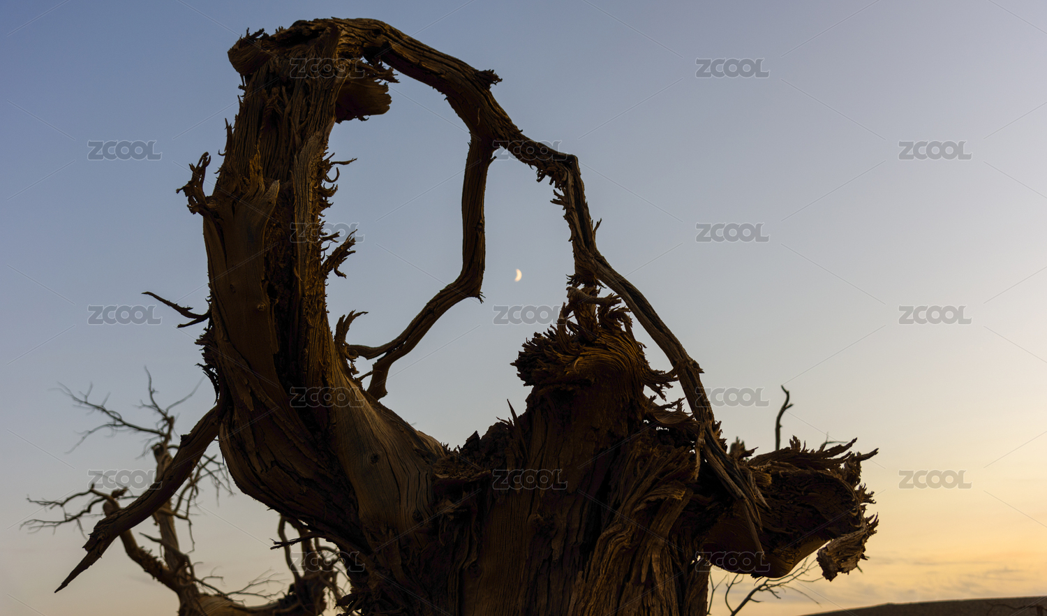 中国内蒙古额济纳旗胡杨林黄昏中的怪树林
