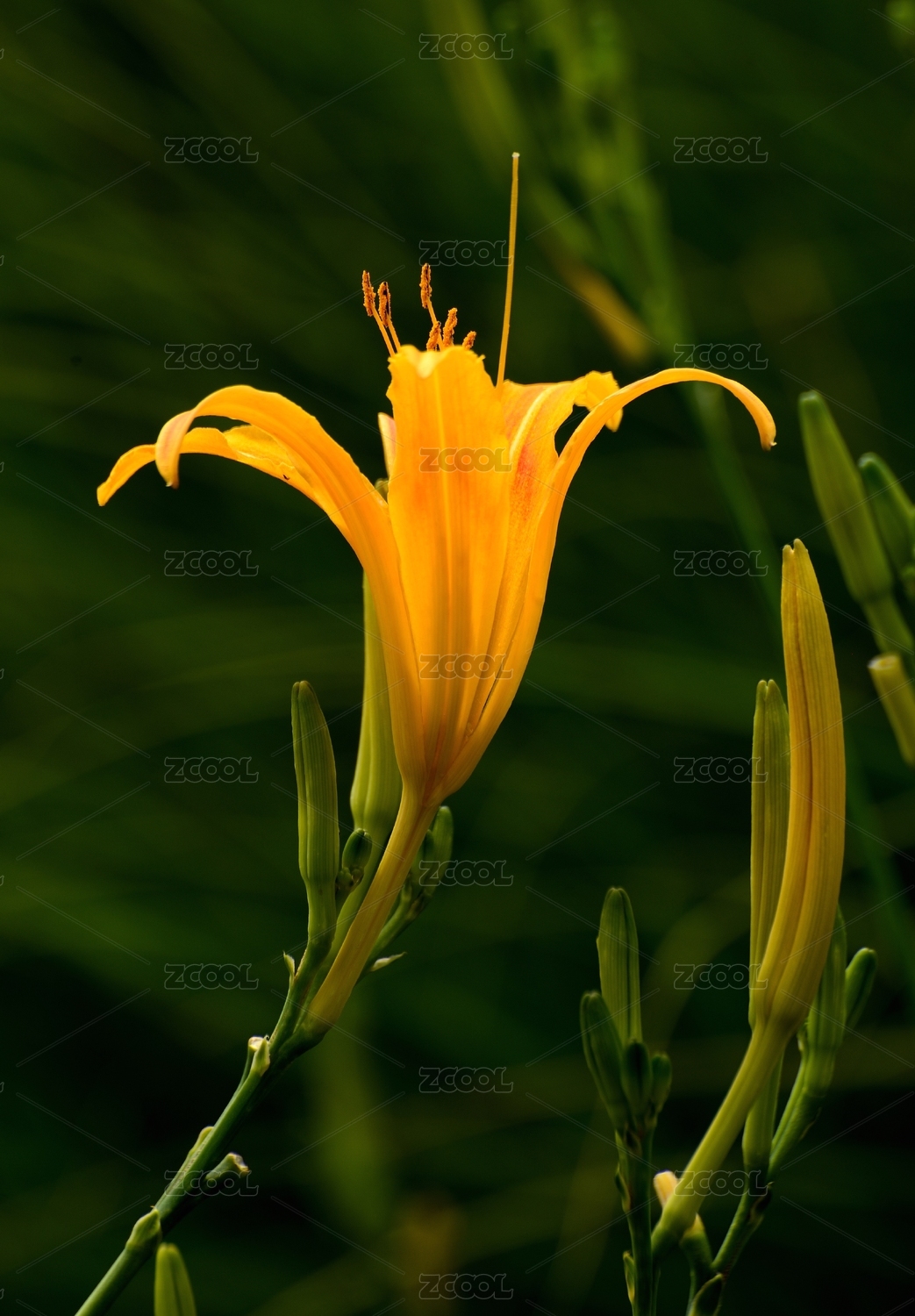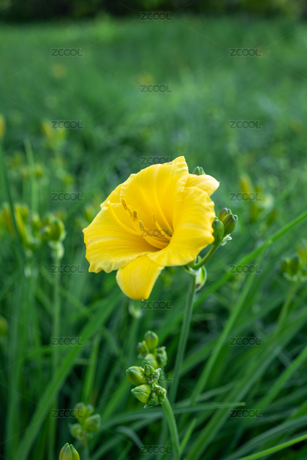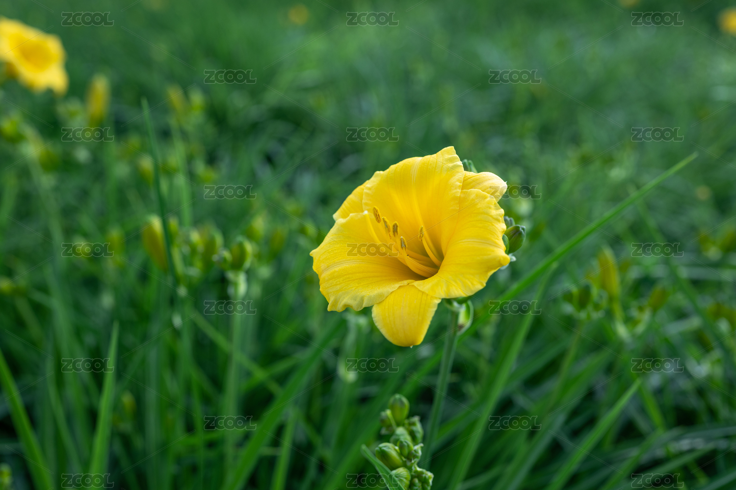 花丛中一朵黄色的萱草,又称忘忧草、母亲花