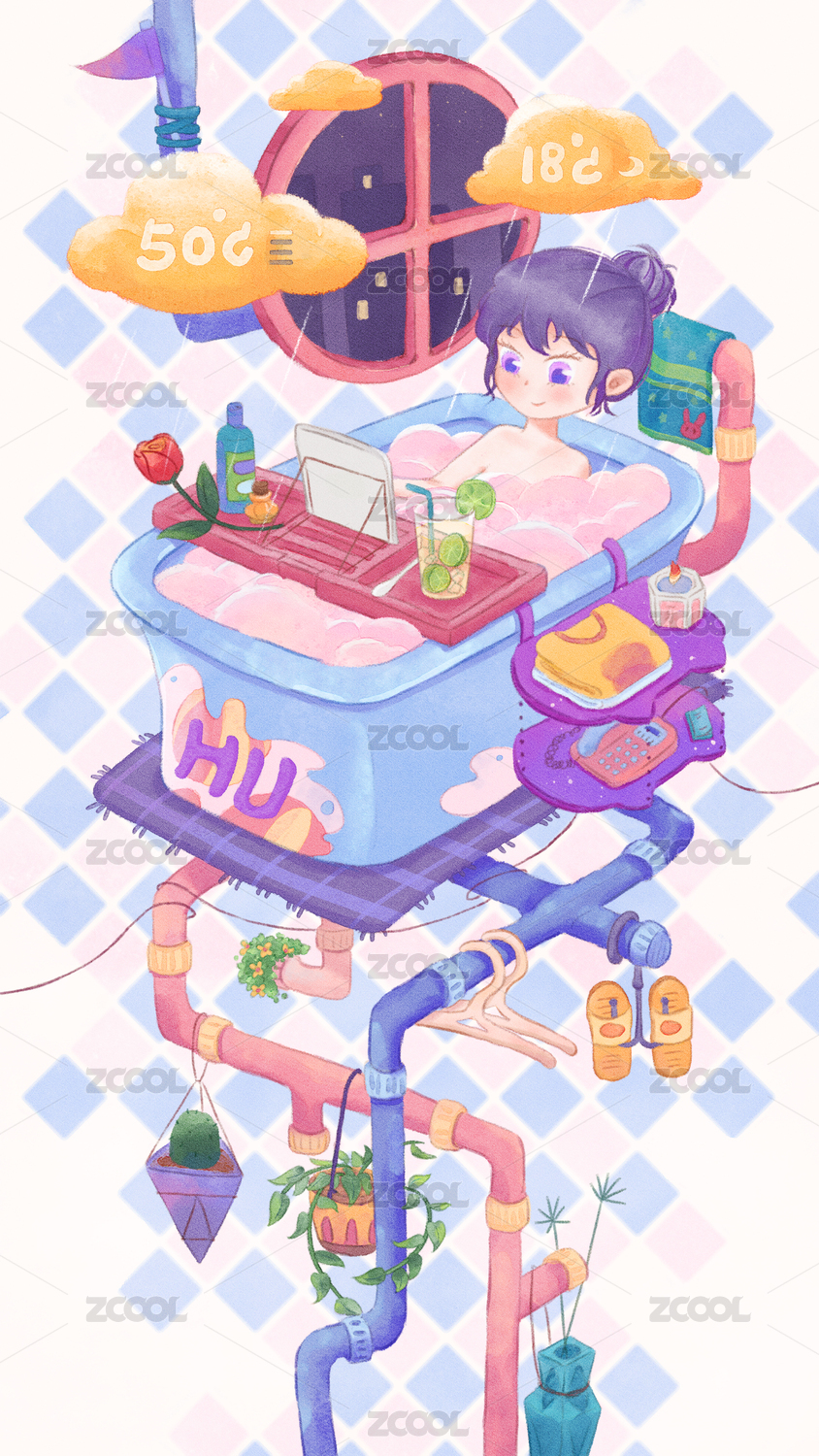 波浪形彩带具有水彩质感曲线抽象纹理背景。