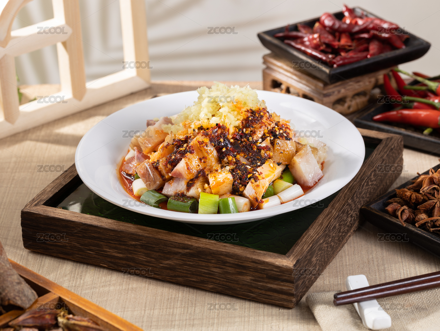 盘子里的凉菜凉拌白切肉丁红油凉拌五花肉丁