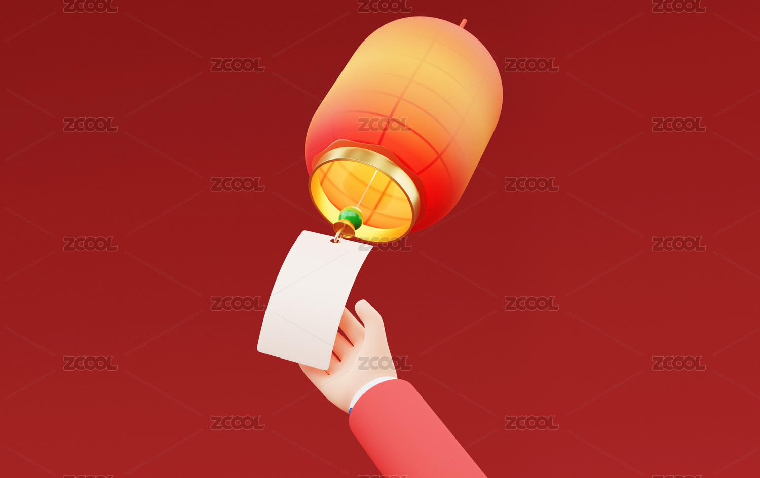 手拿挂有祈福牌的春节元宵中秋立体大红灯笼