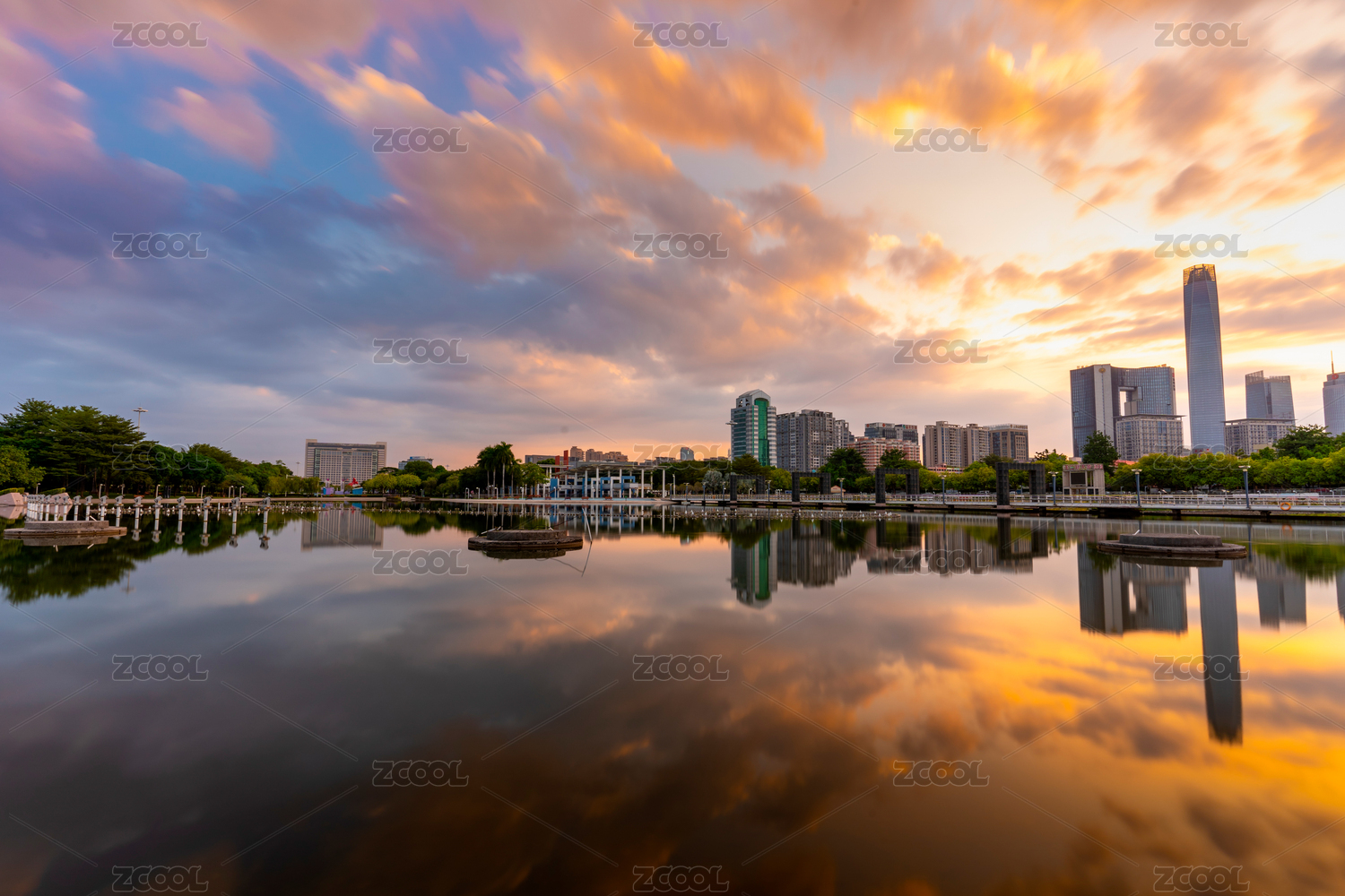 中国广东省东莞市莞城CBD中轴线上的建筑群