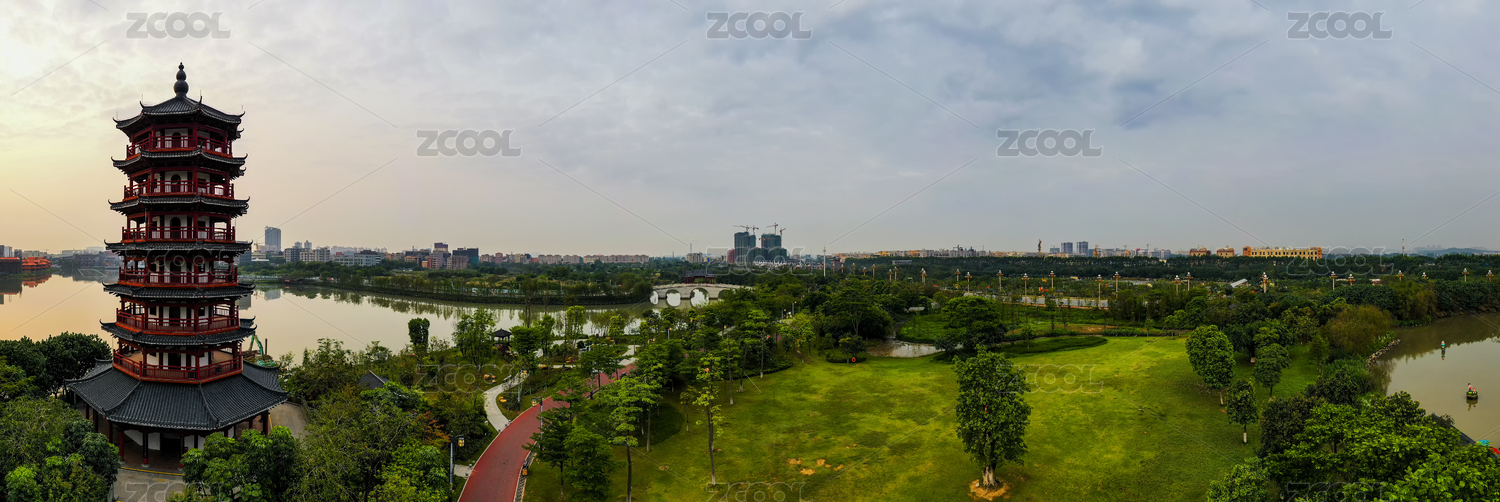 航拍中国广东省东莞华阳湖湿地公园自然风光