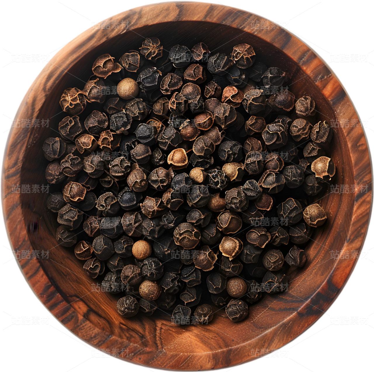 木碗中的黑胡椒粒