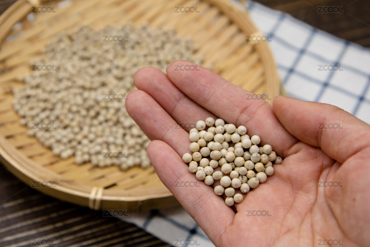木桌背景传统调味料白胡椒粉