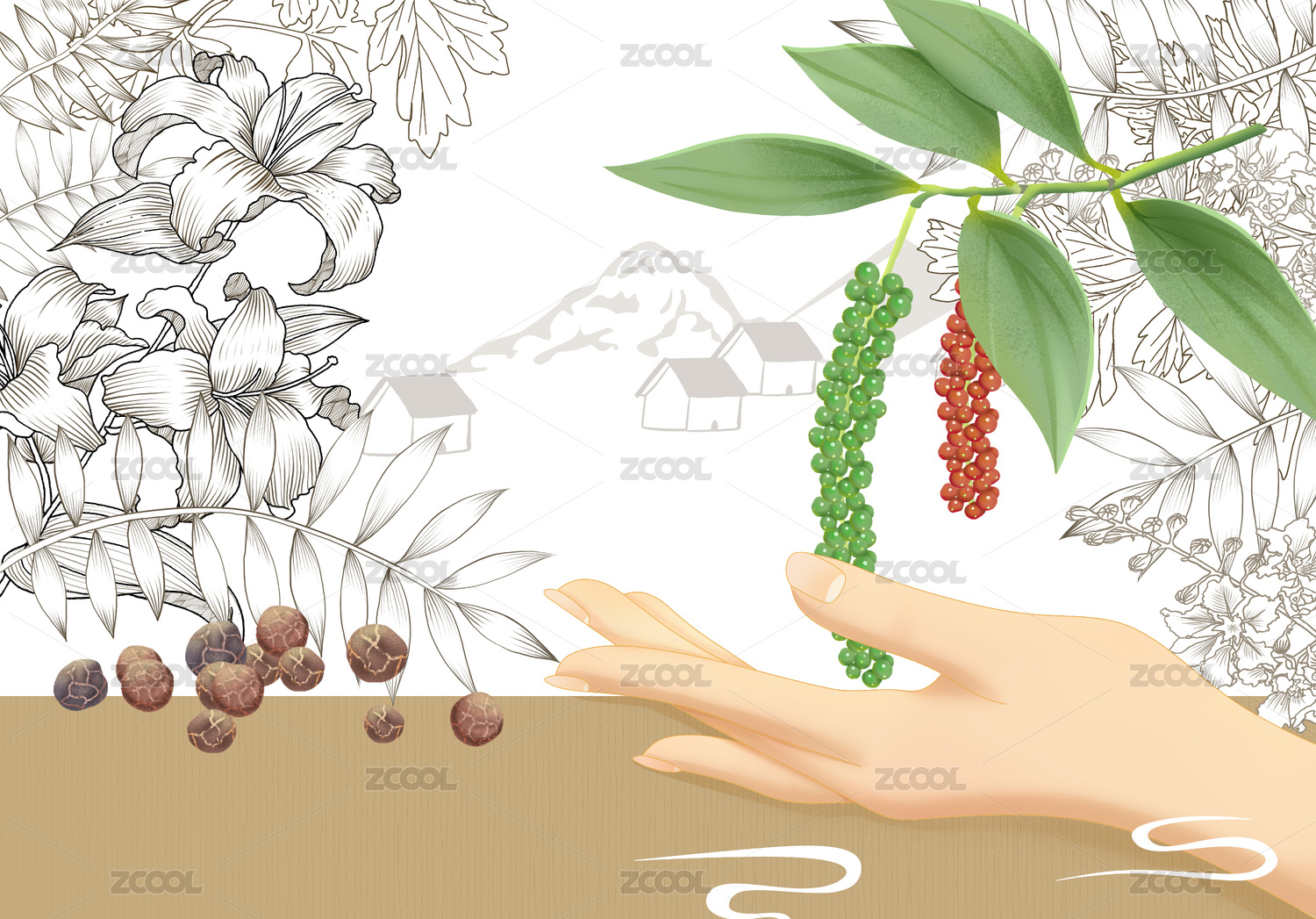 香料胡椒插画