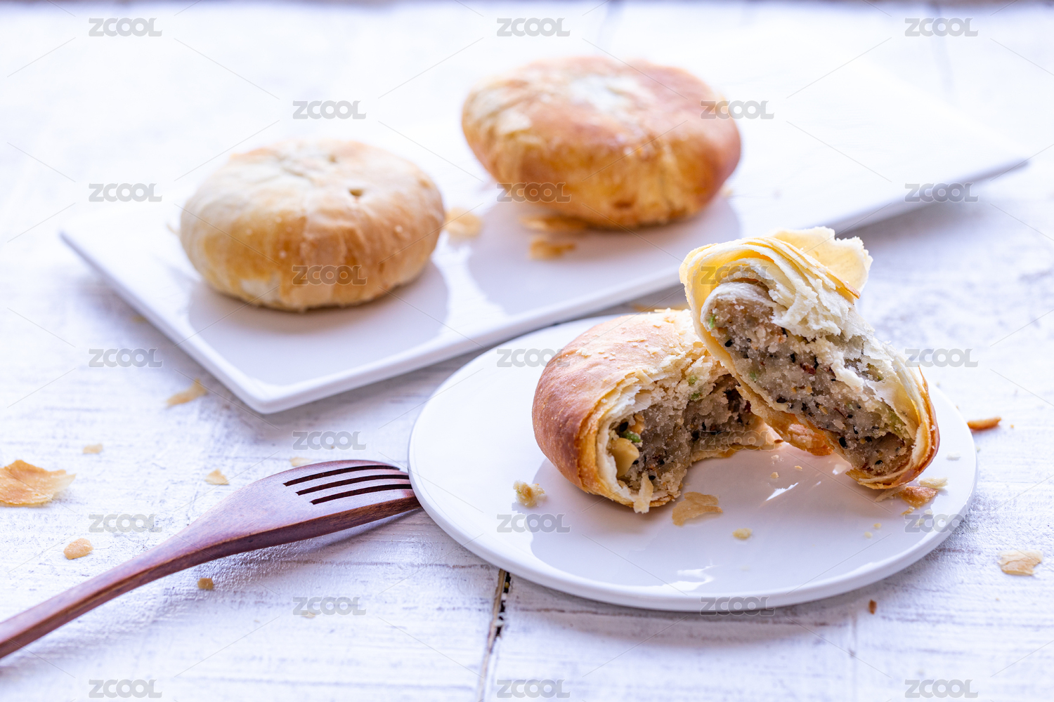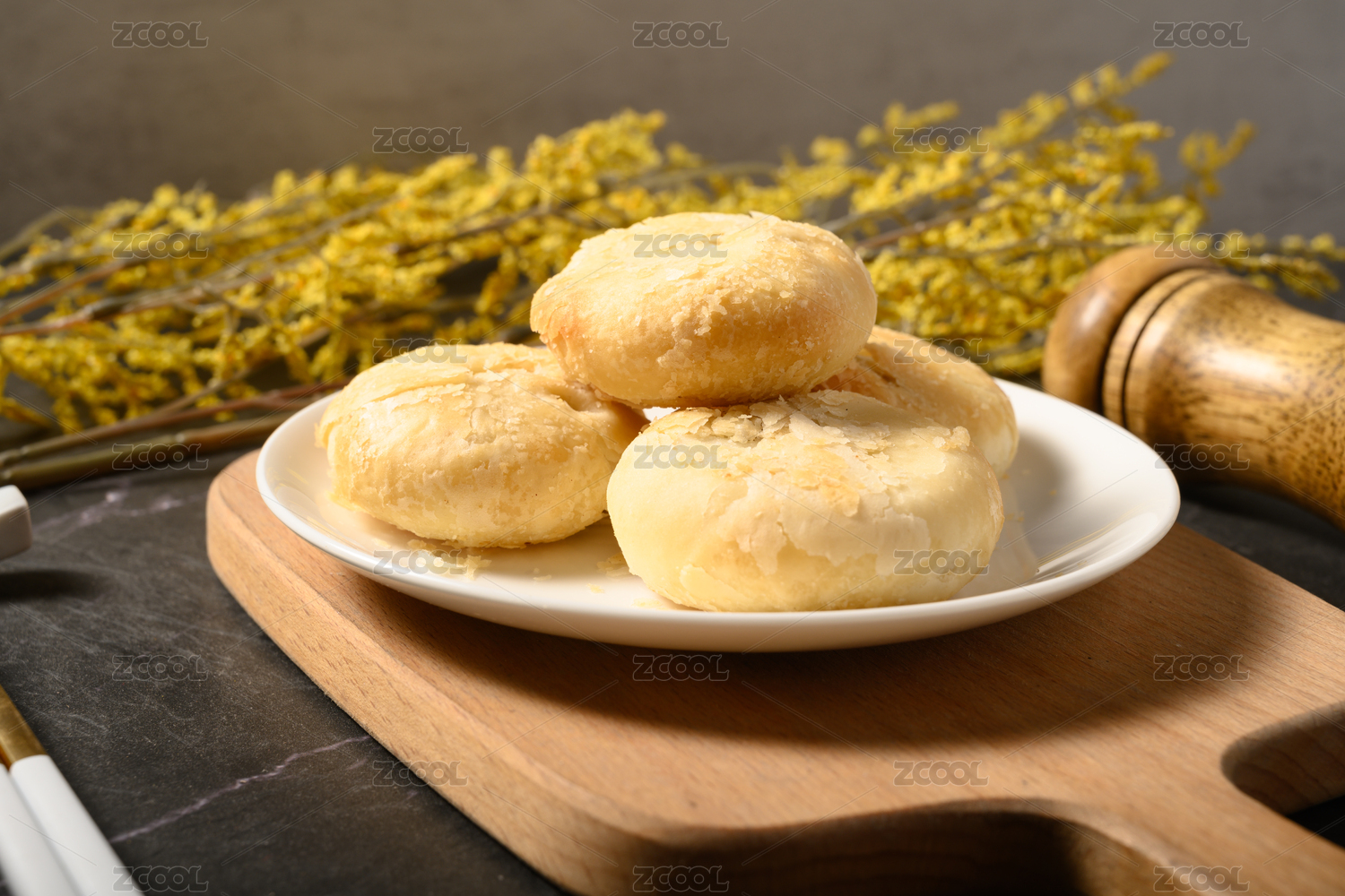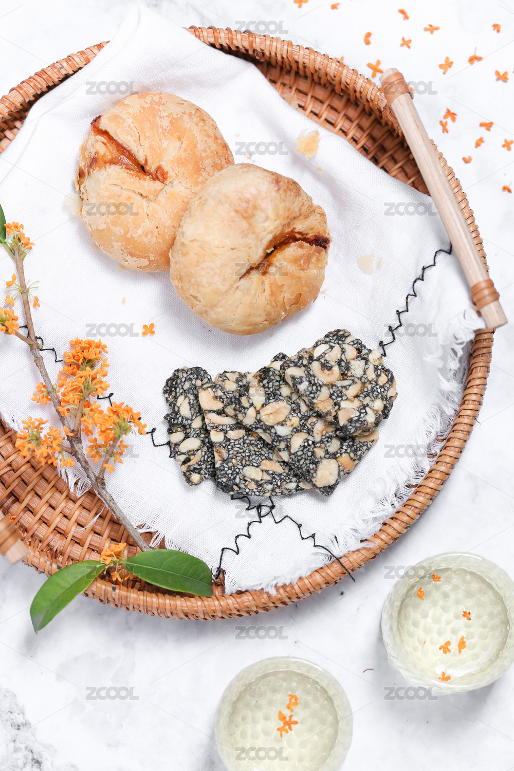 传统中式下午茶酥皮月饼花生芝麻糖和桂花茶