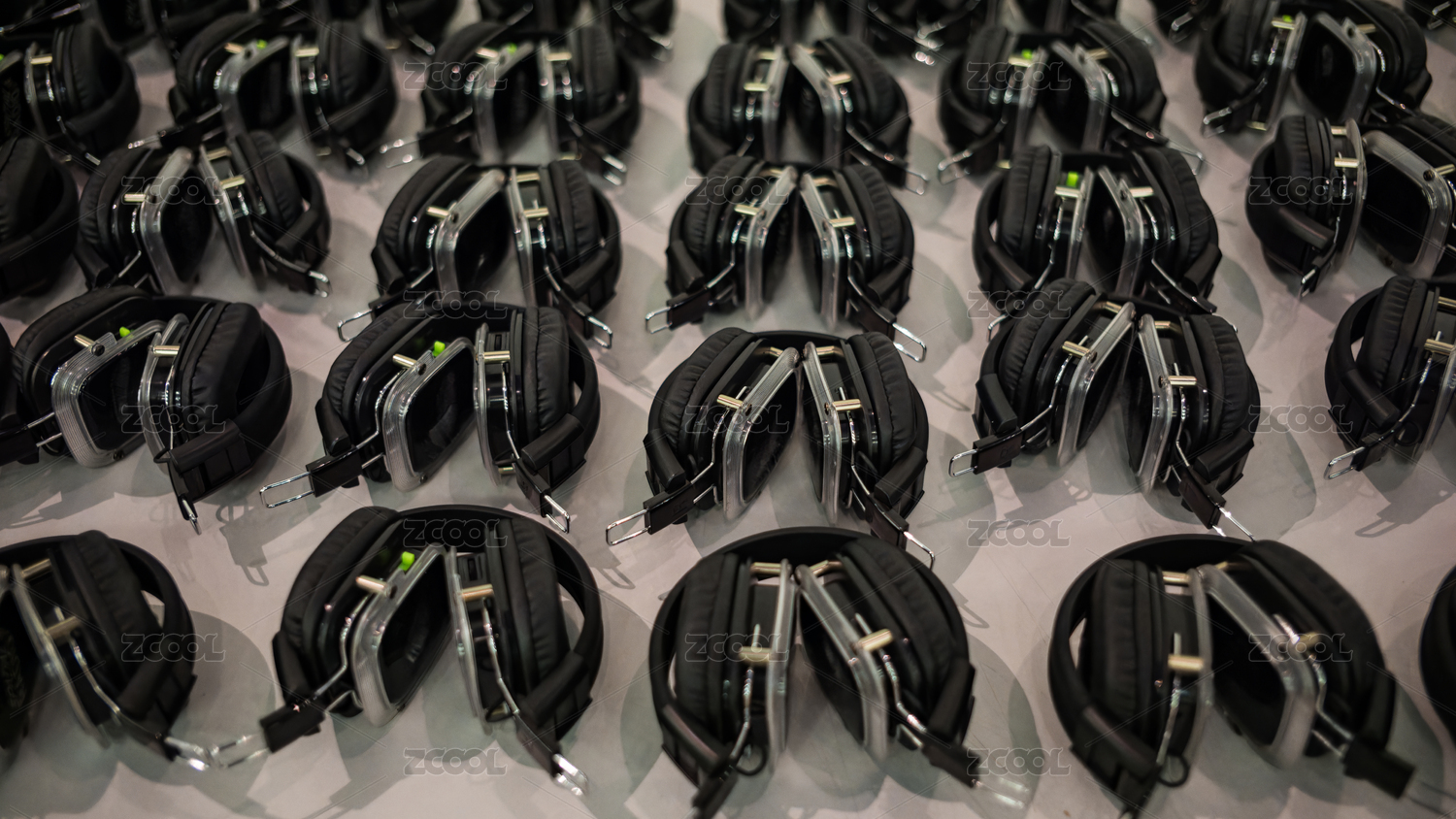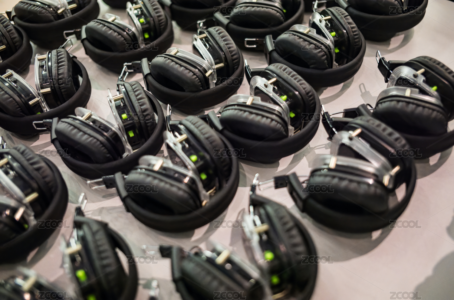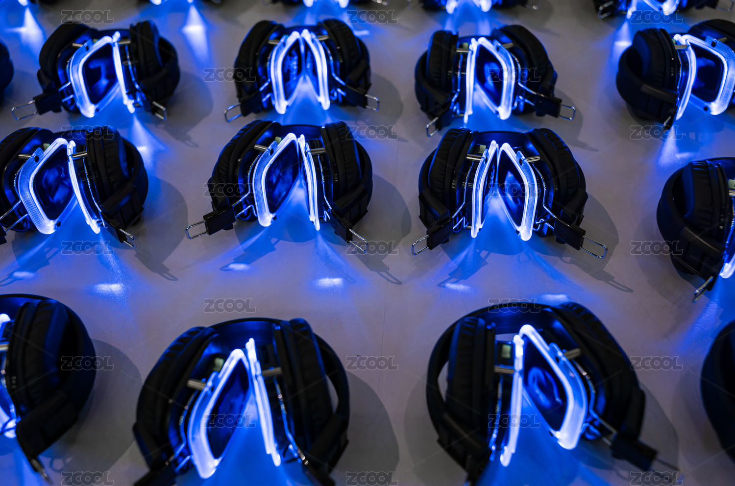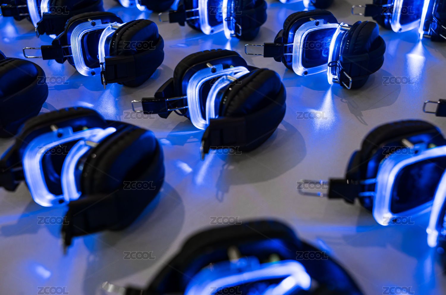 蓝光耀眼的现代耳机阵列