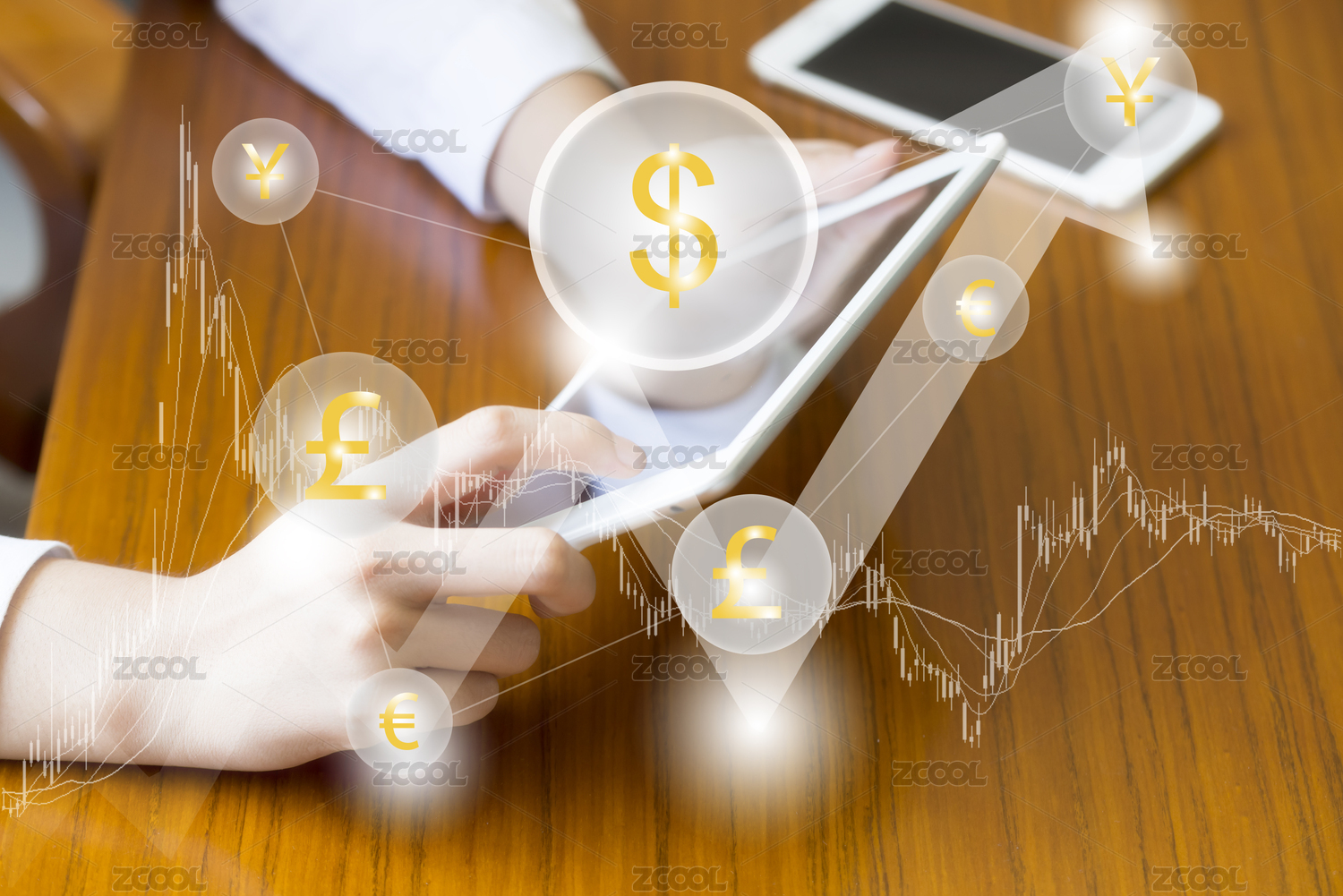 全球货币交易的概念——女人使用平板电脑进行操作