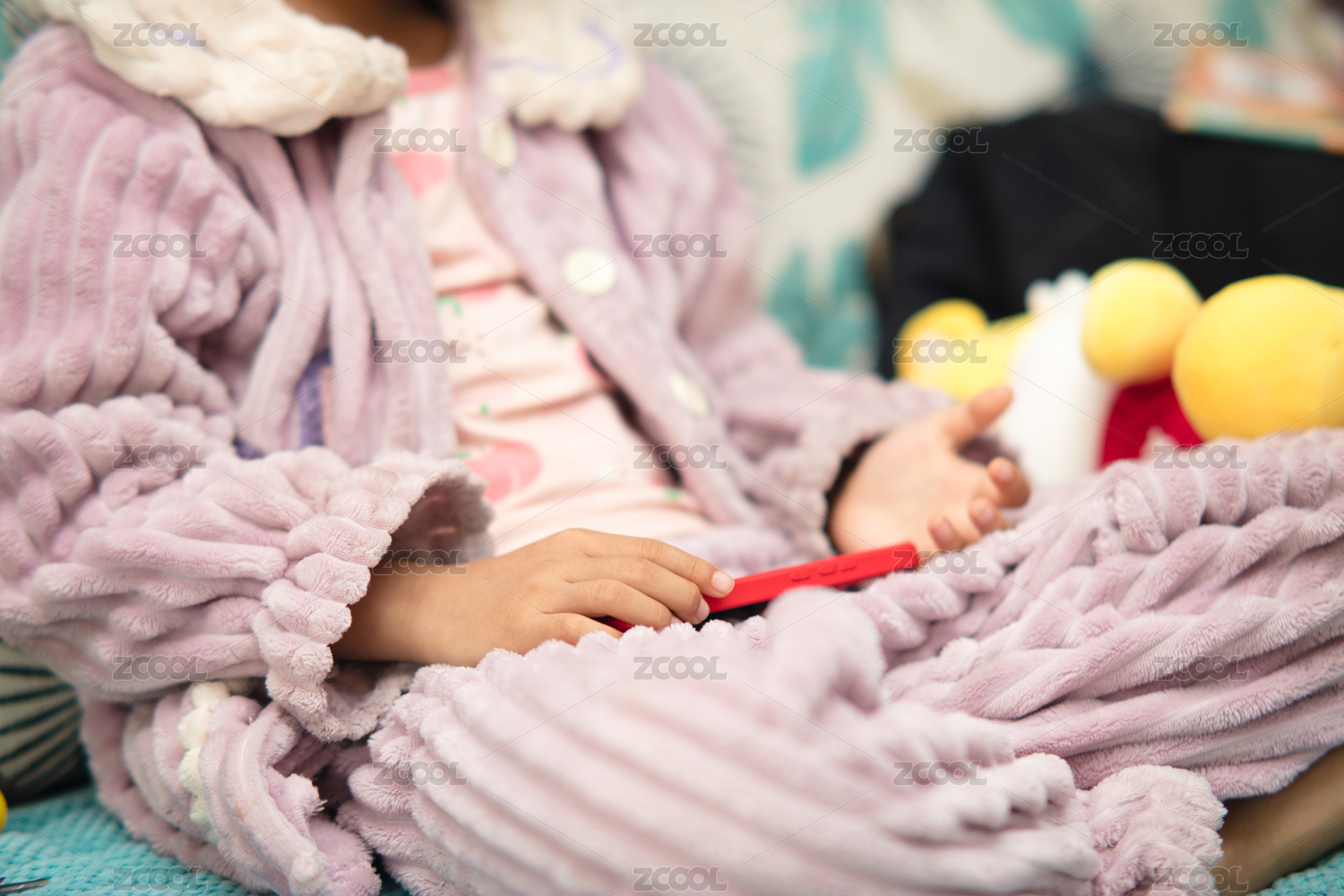 小孩子坐在沙发上玩手机