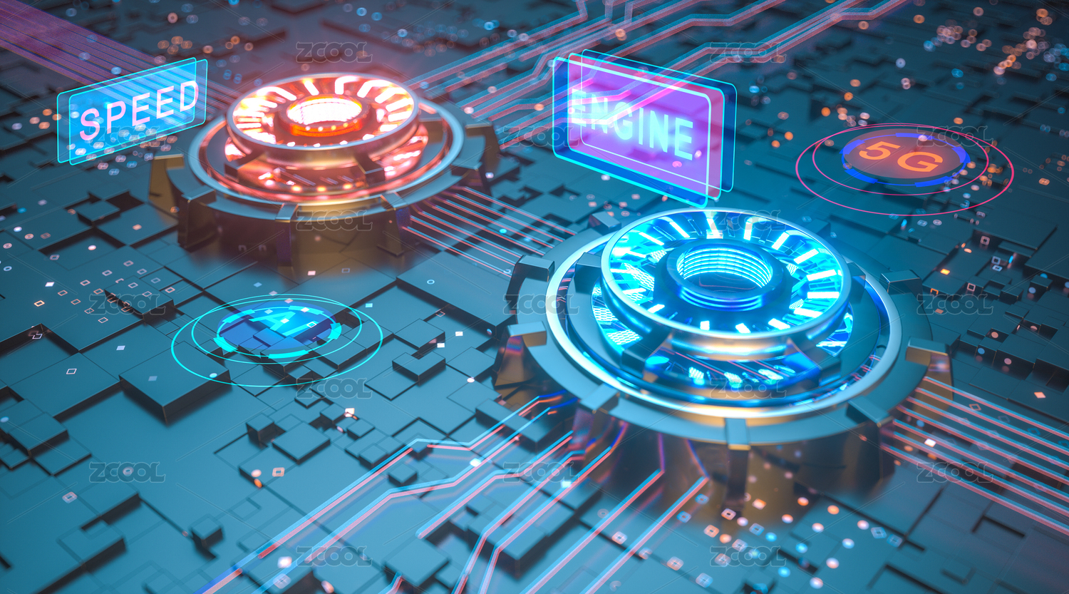 科技电子游戏引擎电子设备硬件双引擎闪充hud显示
