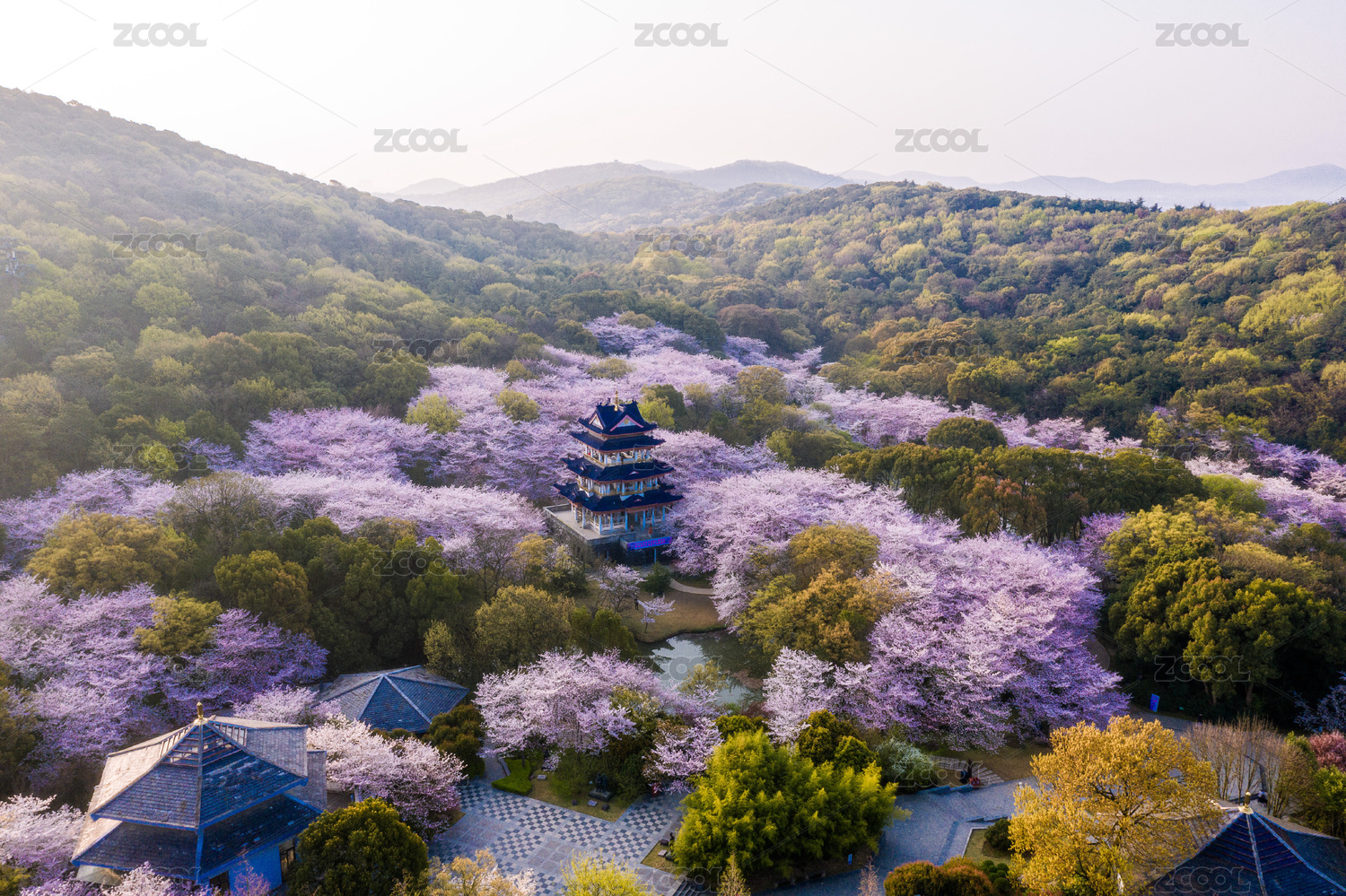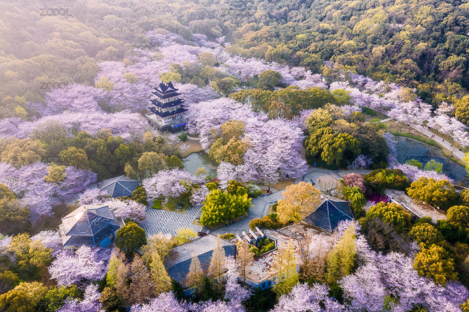 江苏无锡鼋头渚赏樱楼航拍特写镜头