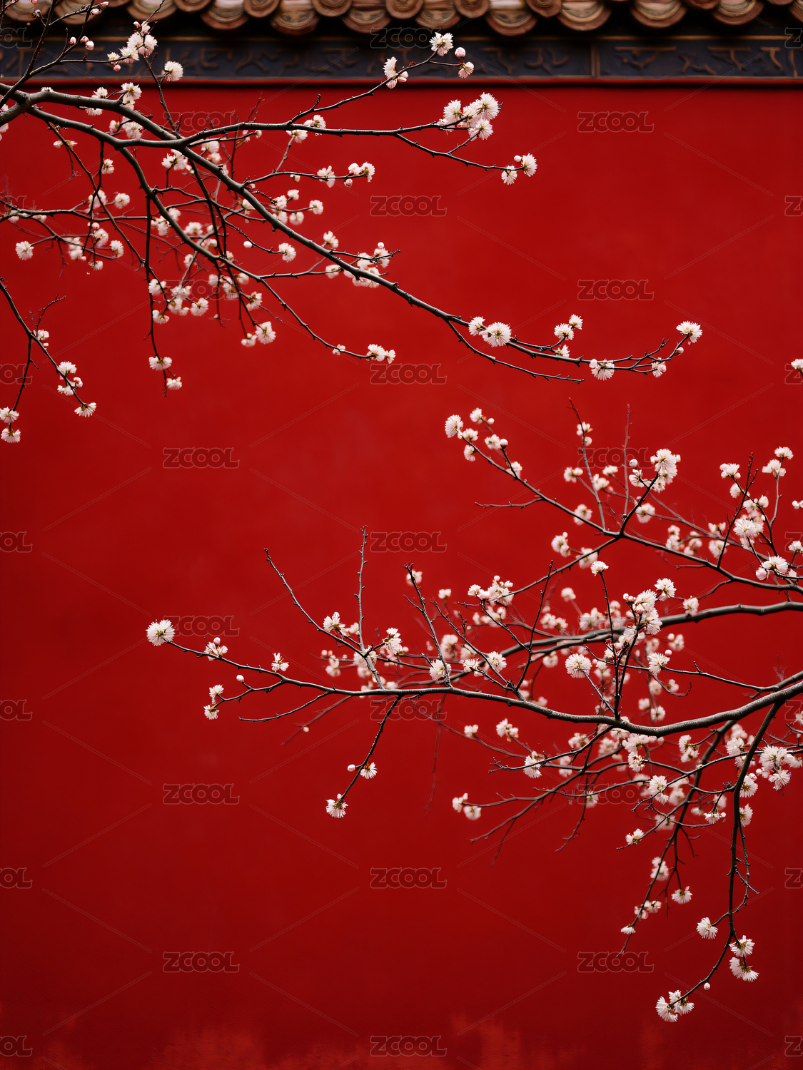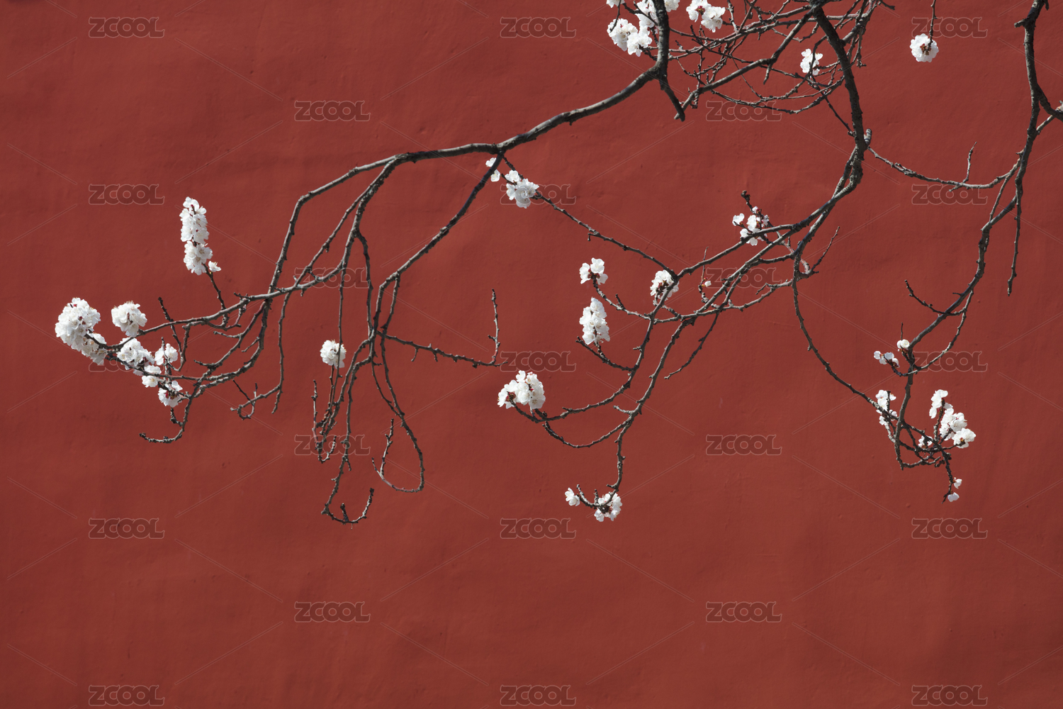 红墙绿瓦一枝梅花