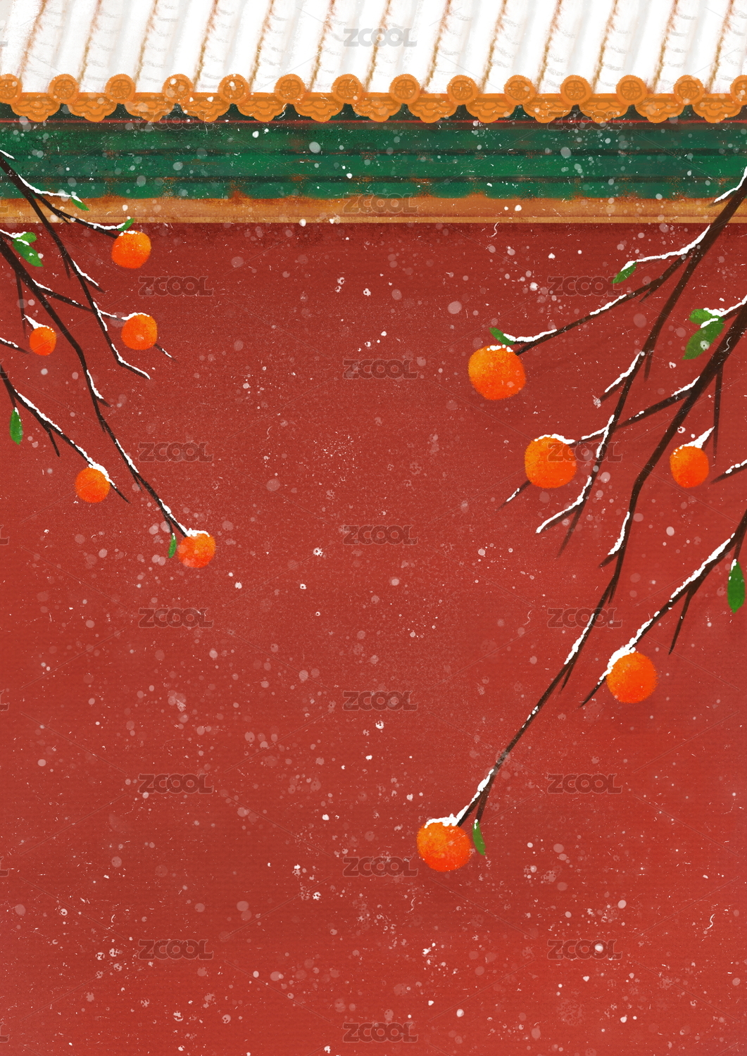 冬季24节气红墙柿子雪景插画