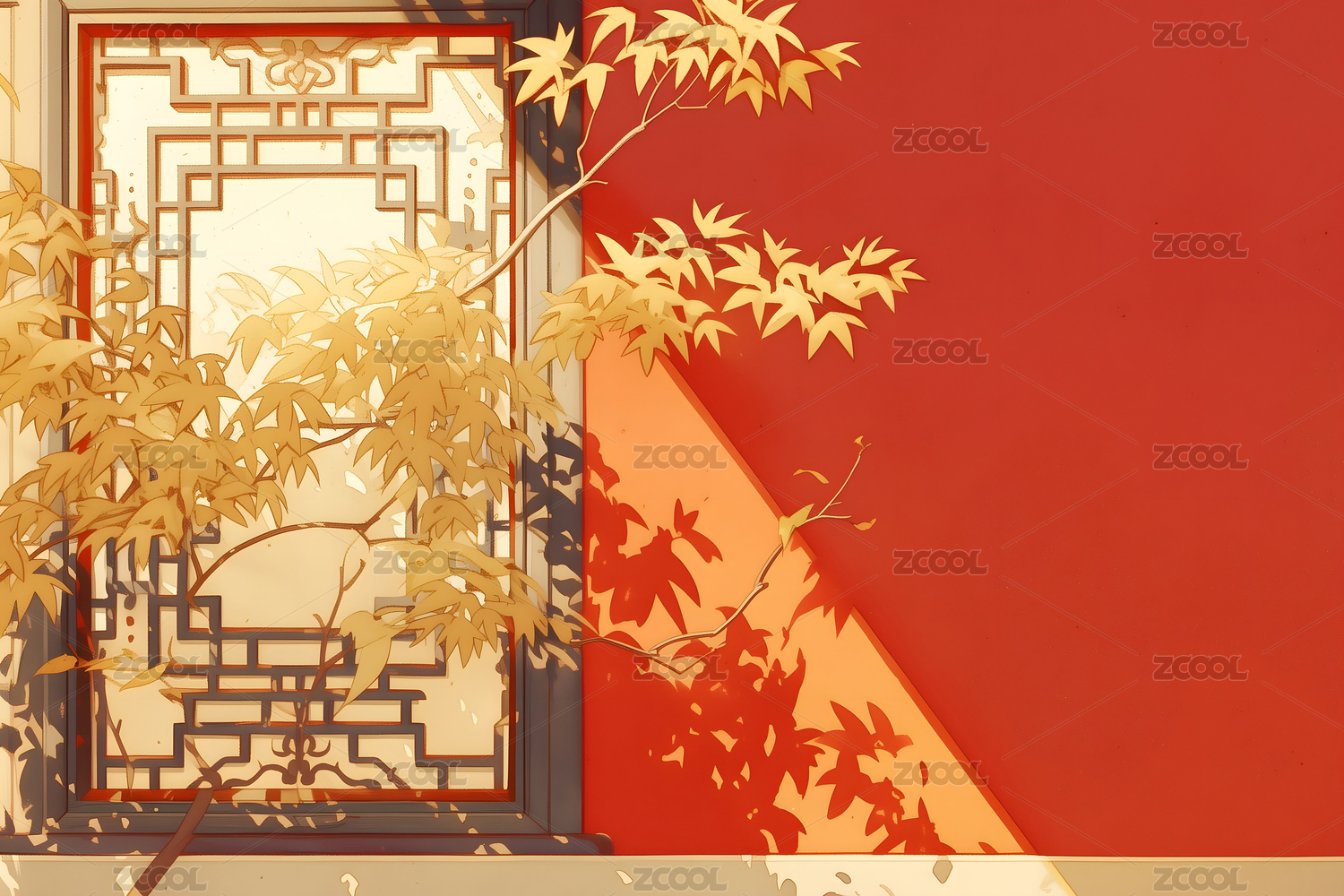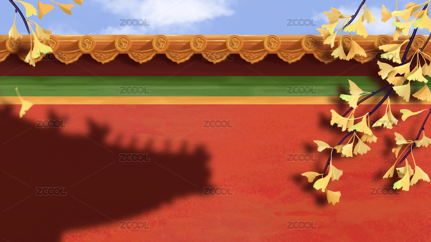 故宫红墙银杏立秋国风插画