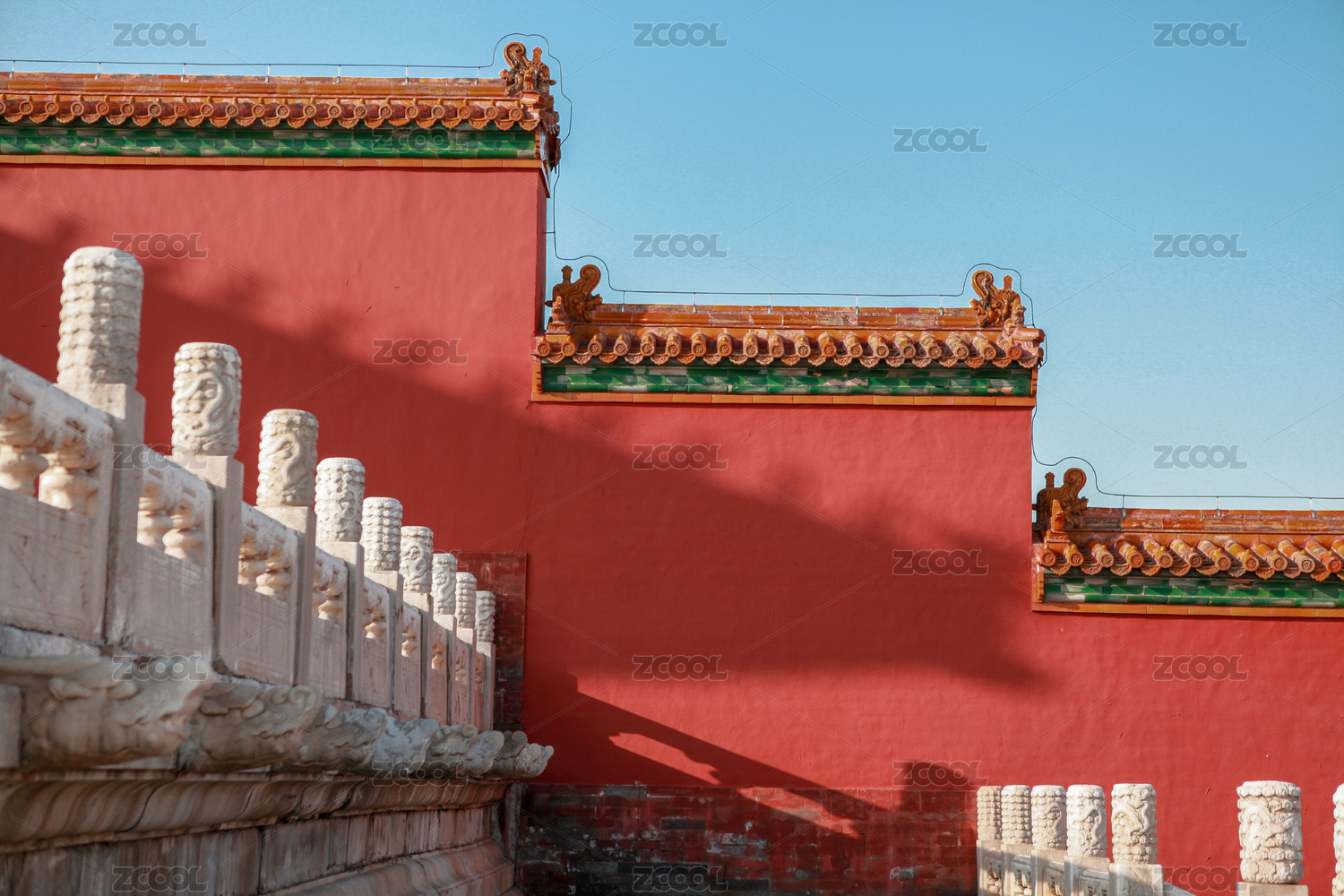北京故宫红墙与白色护栏