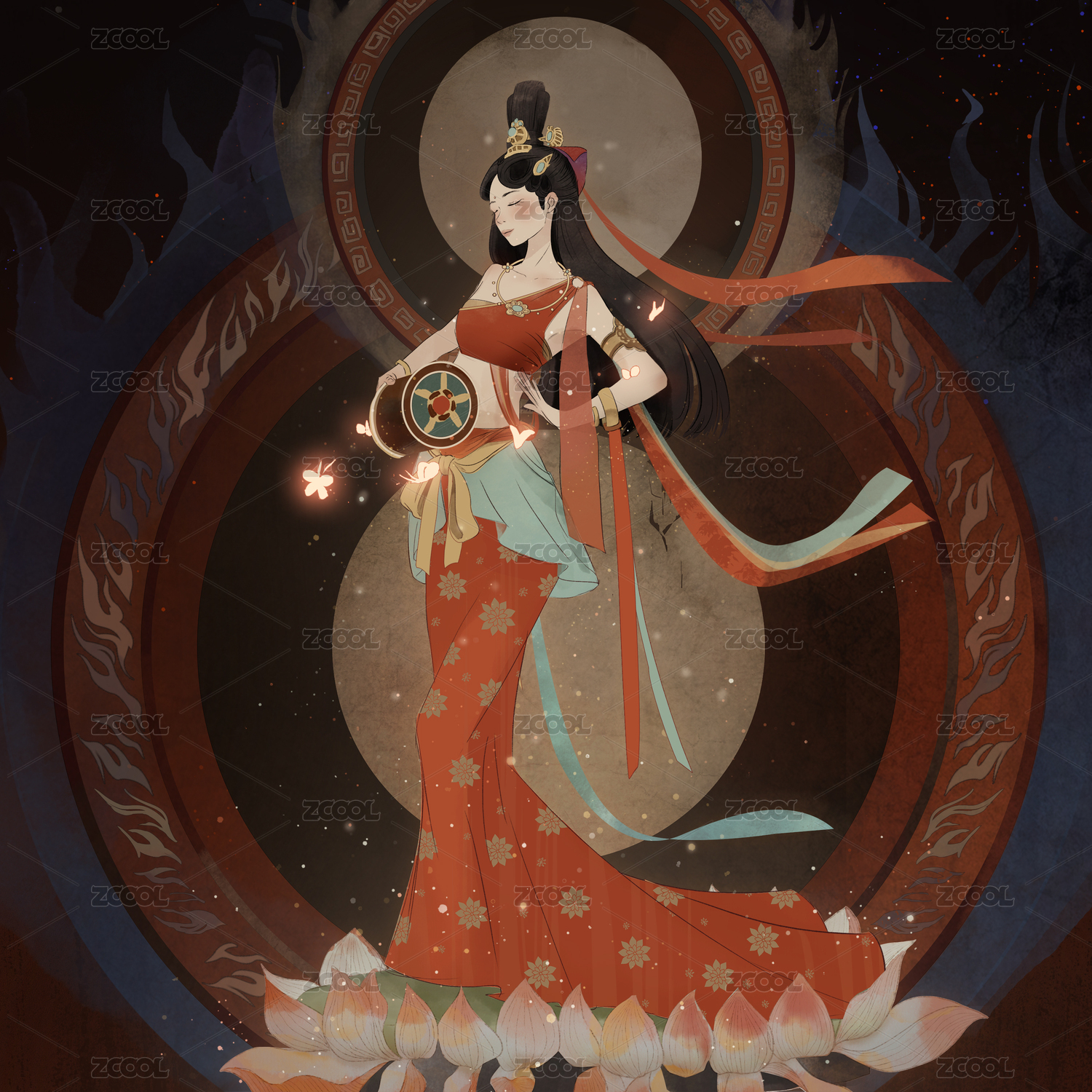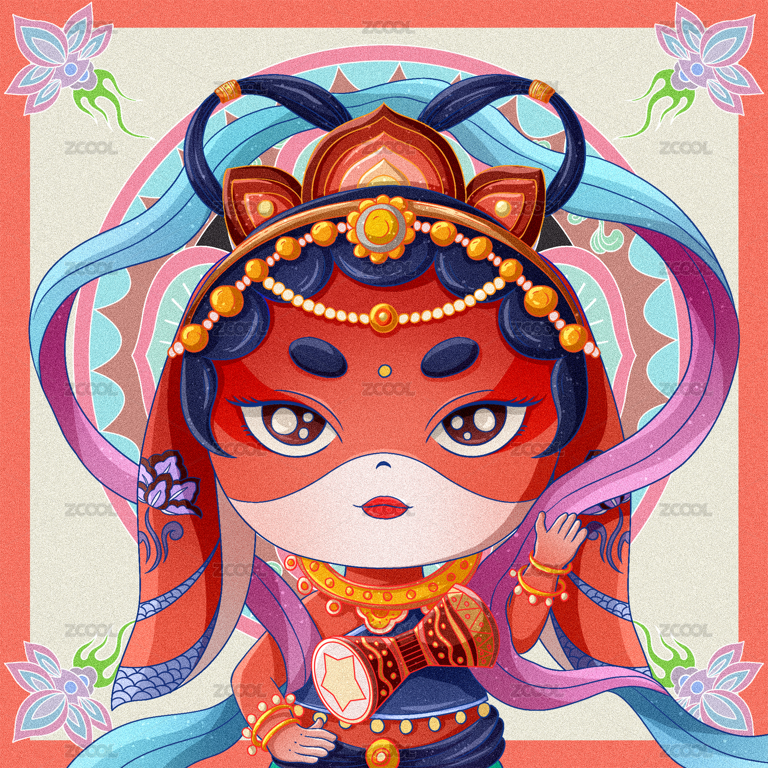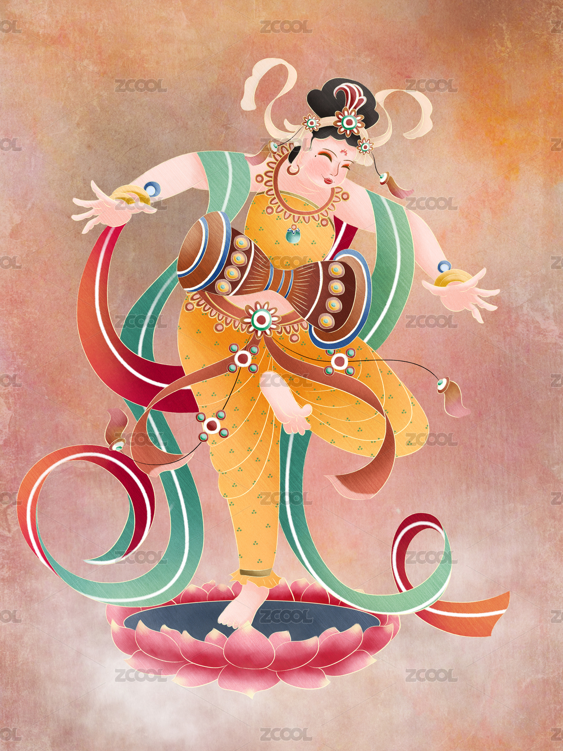 敦煌壁画风格神女-腰鼓