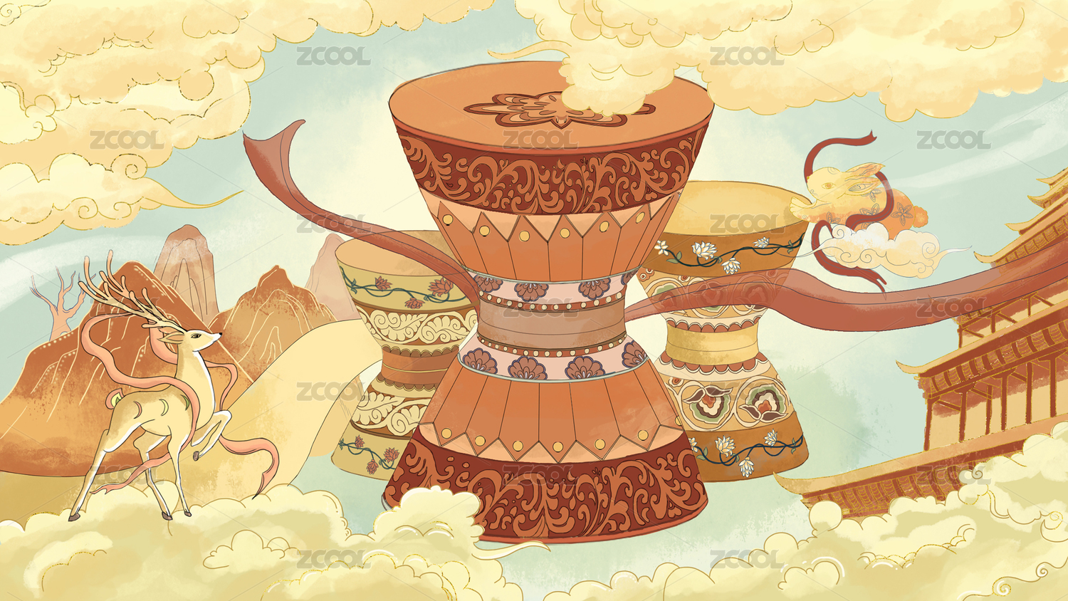 国潮风敦煌兔子飞天乐者打腰鼓