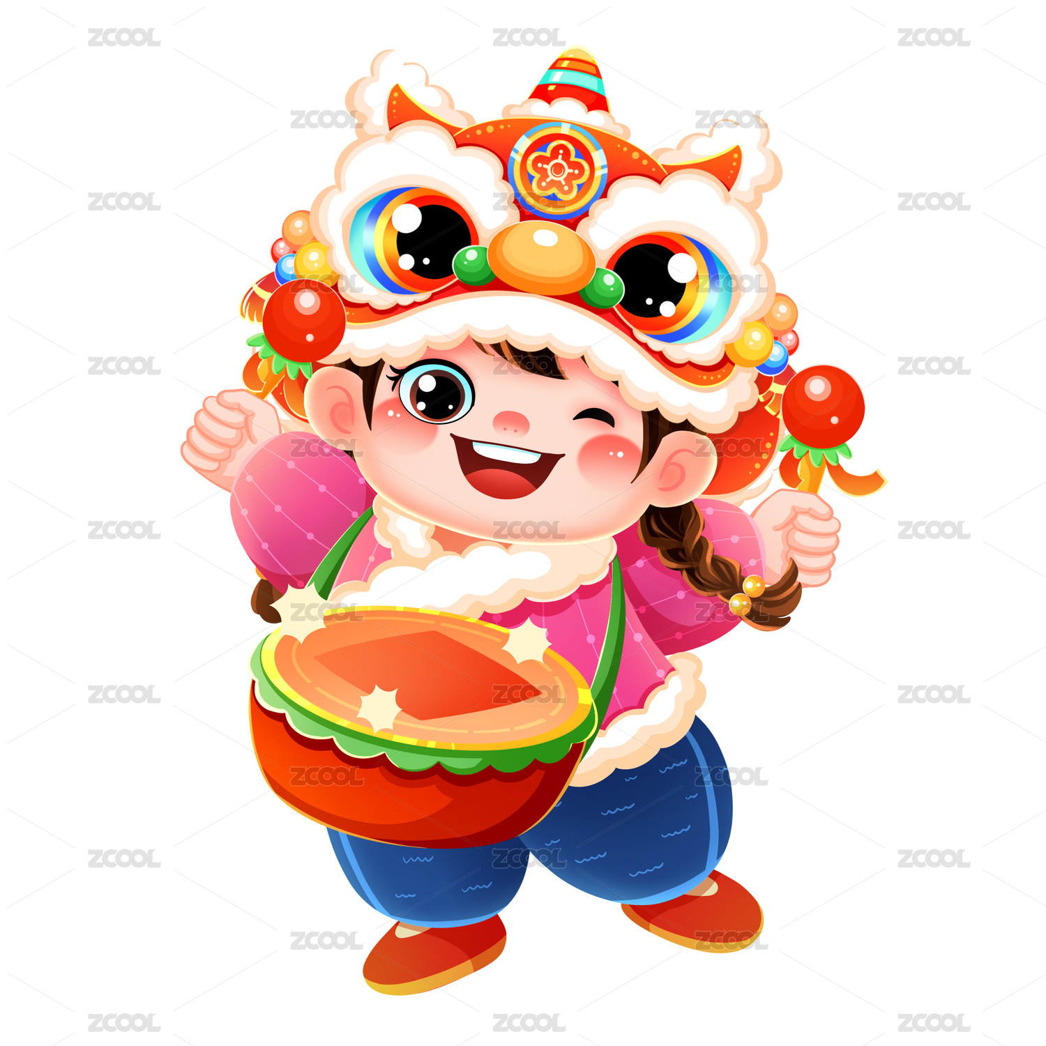 国潮打腰鼓戴虎头帽的中国福娃元素