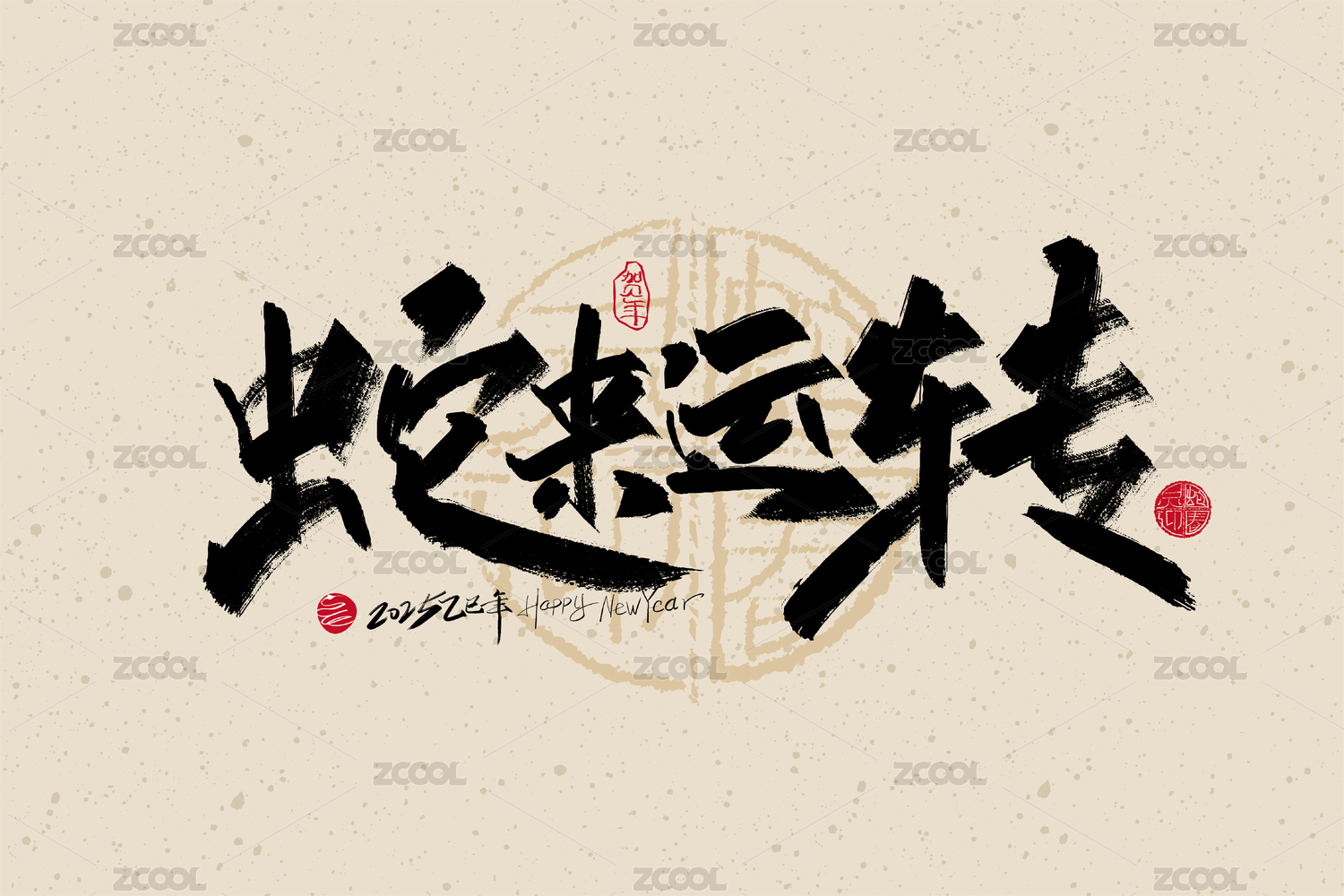 大气手写蛇来运转字体设计