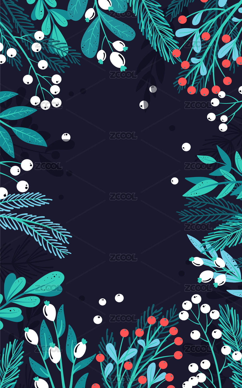 圣诞贺卡花卉菜单请帖清新扁平元素背景矢量插画