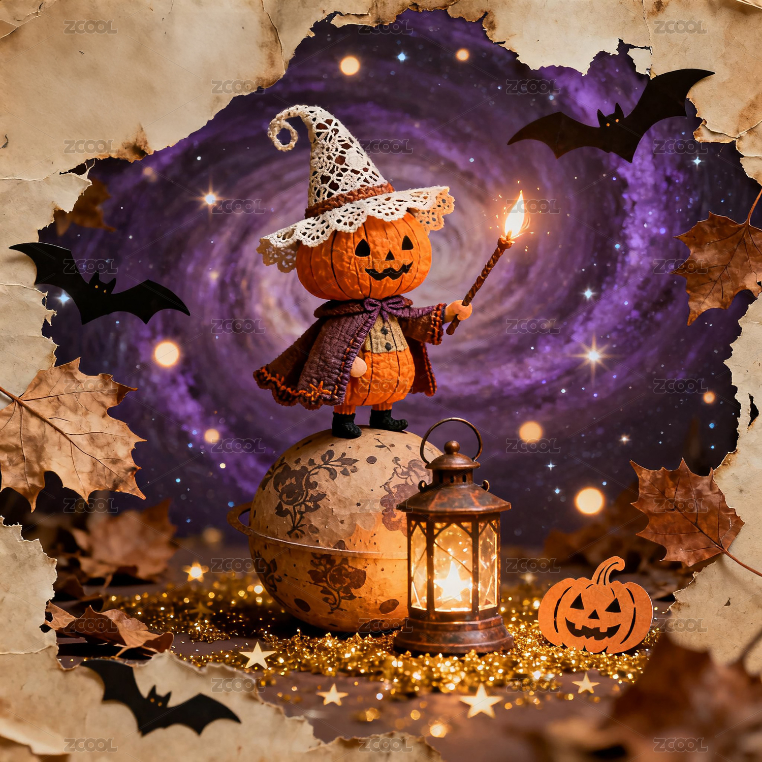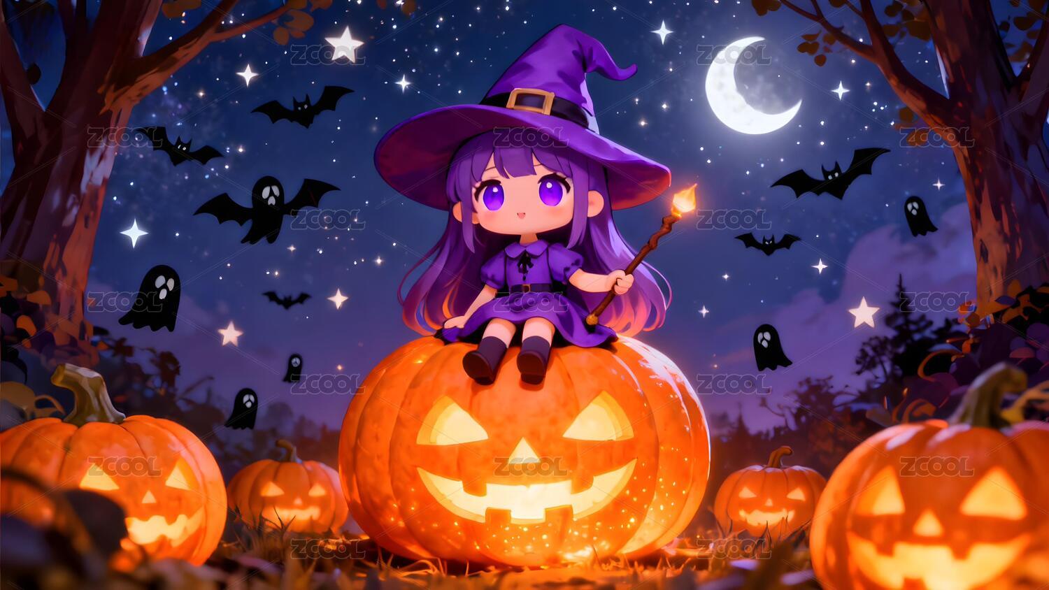 南瓜小巫师星空魔法万圣夜