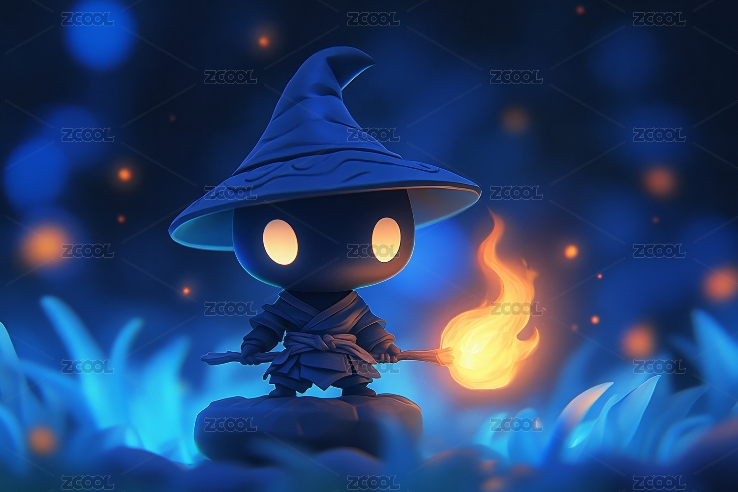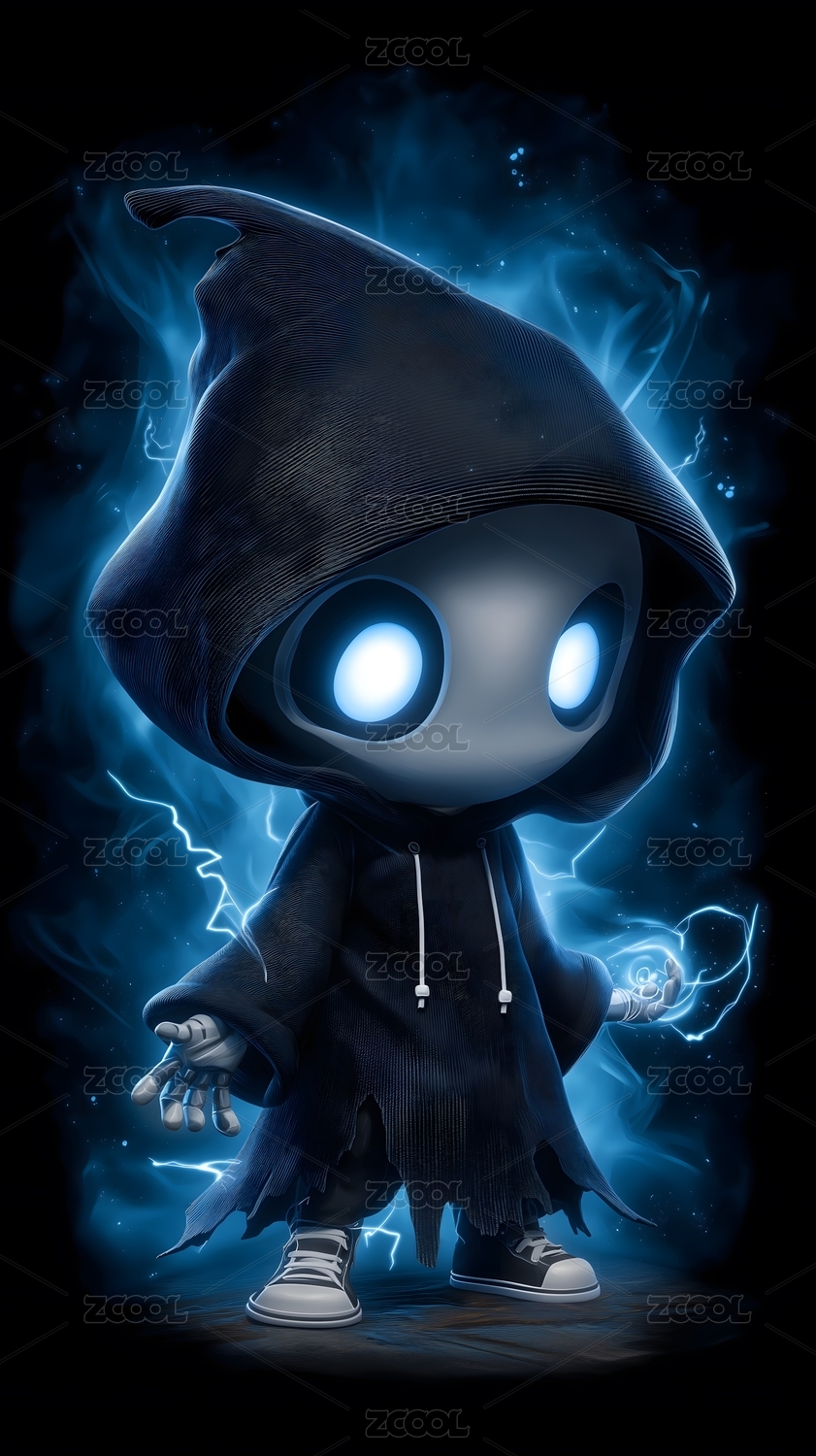 暗黑风魔法小巫师插画形象
