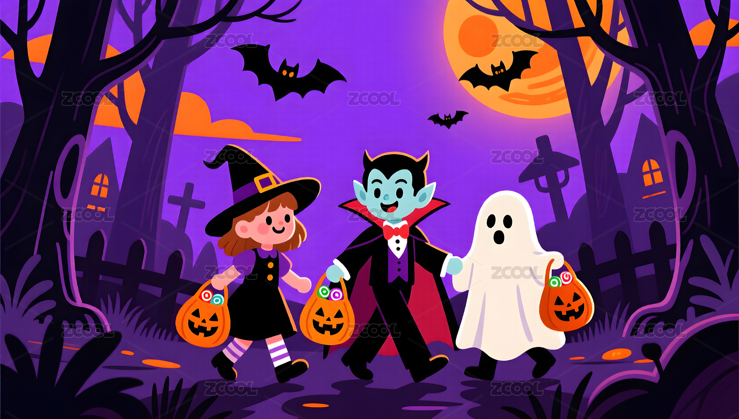 万圣节小孩-水彩风格