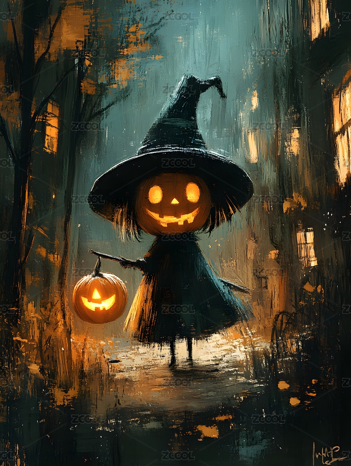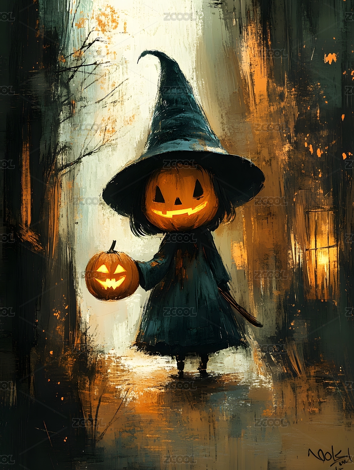 月夜南瓜灯下的小巫师