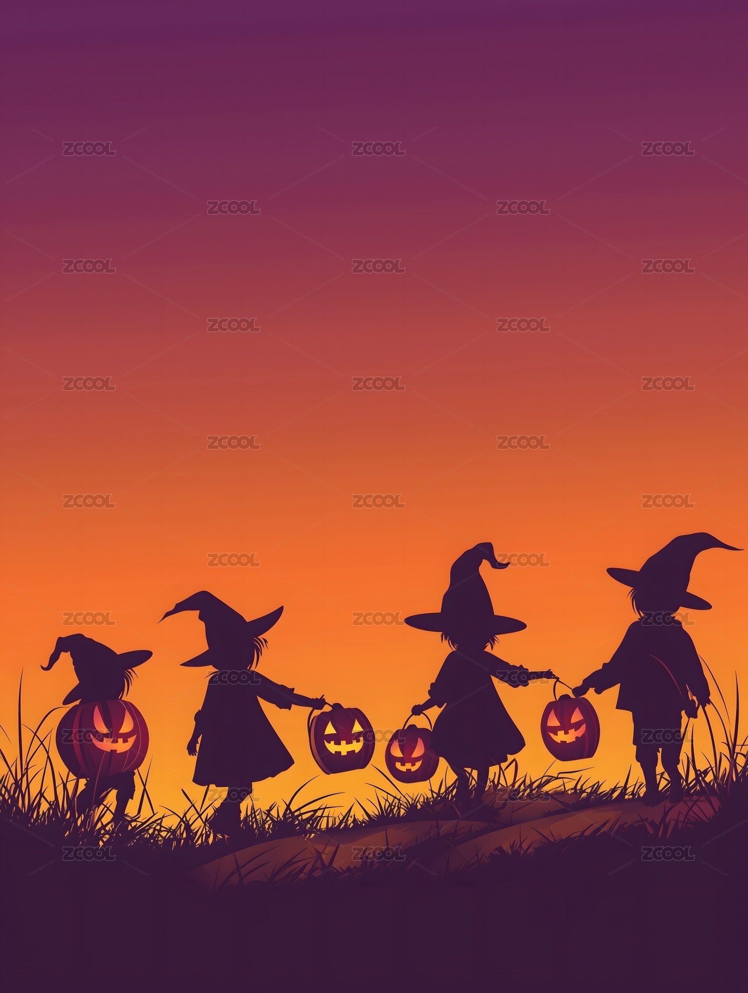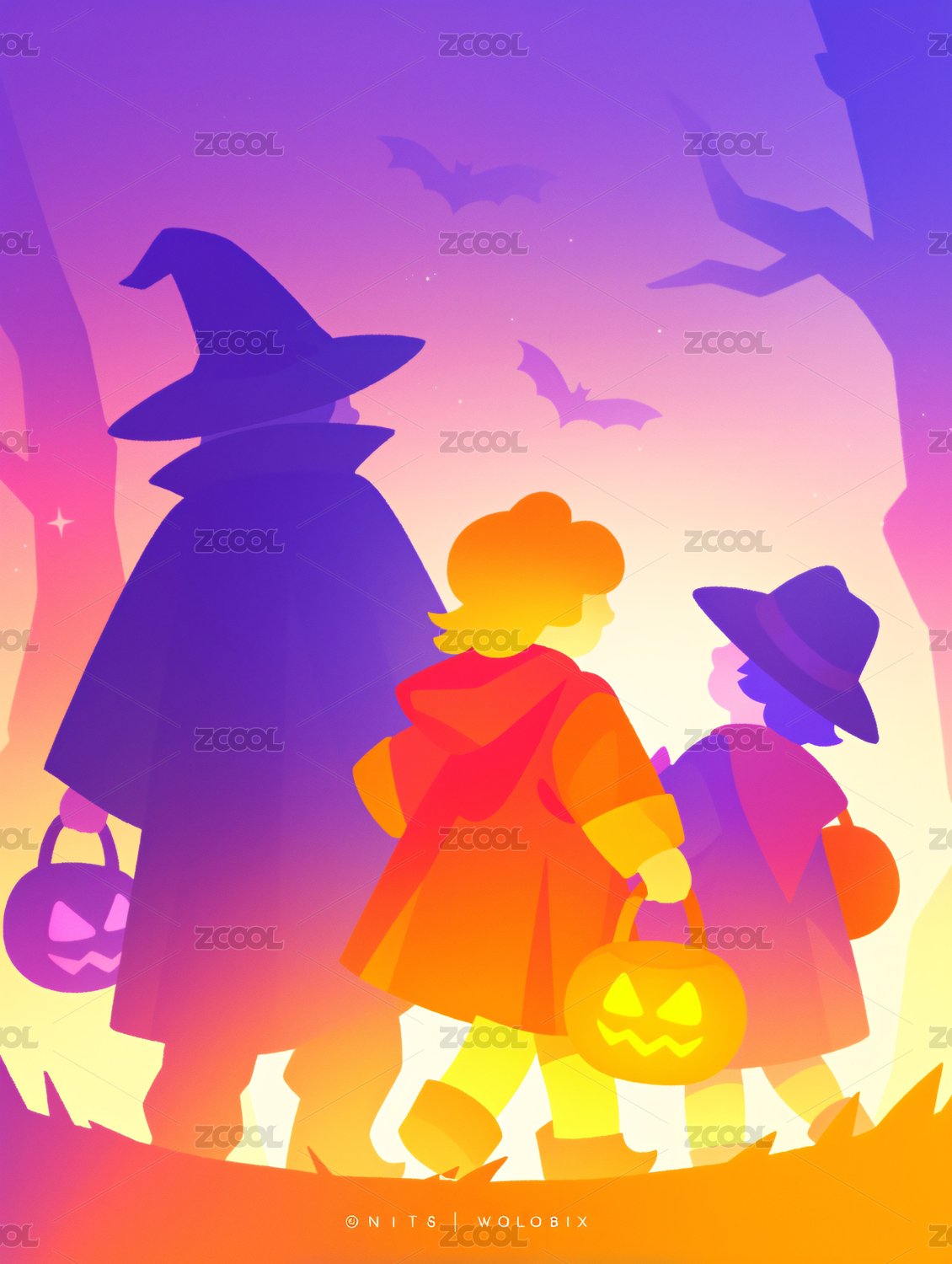 万圣节小巫师巡游,手绘插画