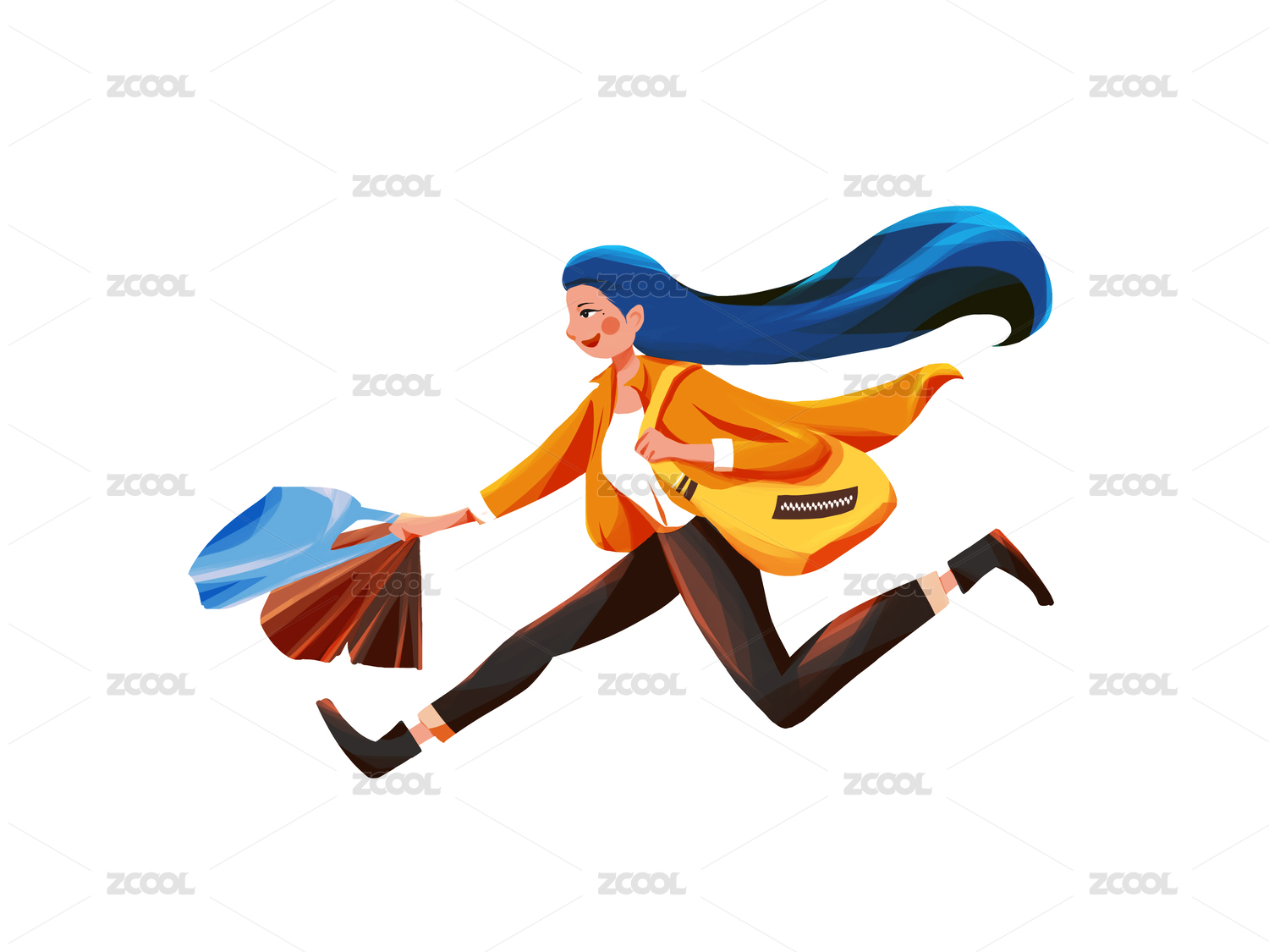 提着购物袋奔跑的人插画人物
