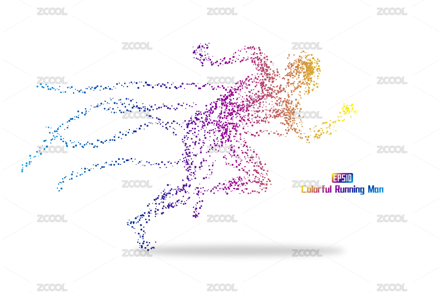 彩色方块颗粒组成奔跑的人,矢量图